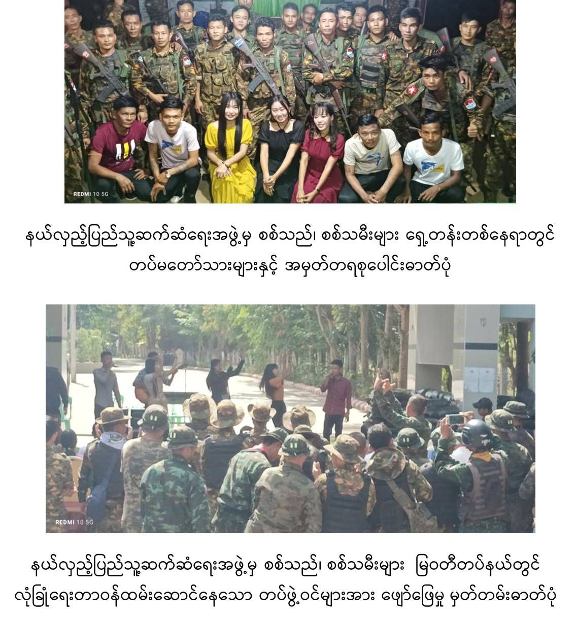 ထိုသို့ ရှေ့တန်းစခန်းများရှိ တပ်မတော်သားများ၊ နယ်ခြားစောင့်တပ်ဖွဲ့များအား သွားရောက်ဂုဏ်ပြု သီဆိုကပြ ဖျော်ဖြေလျက်ရှိရာ ဒီဇင်ဘာ ၂ ရက်နှင့် ယနေ့တို့တွင် အရှေ့တောင်တိုင်း စစ်ဌာနချုပ်နယ်မြေရှိ ရှေ့တန်းစခန်များနှင့် မြဝတီ၊ ကျိုက်ဒုံ၊ ကြာအင်းဆိပ်ကြီးတို့ရှိ နယ်မြေခံ တပ်ရင်းဌာနချုပ်များသို့ မြန်မာ့အသံနှင့် ရုပ်မြင်သံကြား(MRTV)မှ ဖျော်ဖြေရေးအဖွဲ့သူ အဖွဲ့သားများ၊ နယ်လှည့်ပြည်သူ့ ဆက်ဆံရေးအဖွဲ့များမှ အရာရှိ၊ စစ်သည်၊ စစ်သမီးများက စစ်ချီတေးသီချင်းများ၊ ခေတ်ပေါ်နှင့် ခေတ်ဟောင်းတေးသီချင်းများဖြင့် သီဆိုကပြဖျော်ဖြေကြရာ ရှေ့တန်းစခန်းများနှင့် တပ်ရင်းဌာနချုပ်များရှိ တပ်မတော်သားများနှင့် မိသားစုဝင်များ၊ နယ်ခြားစောင့် တပ်ဖွဲ့များက လုံခြုံရေးအရ အလှည့်ကျစနစ်ဖြင့် စိတ်ပျော်ရွှင် ကြည်နူးချမ်းမြေ့စွာဖြင့် ကြည့်ရှုအားပေး၍ အချို့စစ်သည်များမှာလည်း လွတ်လပ် ပေါ့ပါးစွာဖြင့် ပါဝင်သီဆိုကြသည်။ ရှေ့တန်းစခန်းအလိုက်နှင့် ဌာနချုပ်များမှ အရာရှိ၊ စစ်သည်၊ မိသားစုများက လာရောက်သီဆို ဖျော်ဖြေပေးကြသည့် ဖျော်ဖြေရေး အဖွဲ့များကိုလည်း ဂုဏ်ပြုဆုငွေများ ပေးအပ်ကြပြီး ဒေသထွက်အစားအစာများဖြင့် ဧည့်ခံကျွေးမွေးခဲ့ကြကြောင်း သတင်းရရှိသည်။