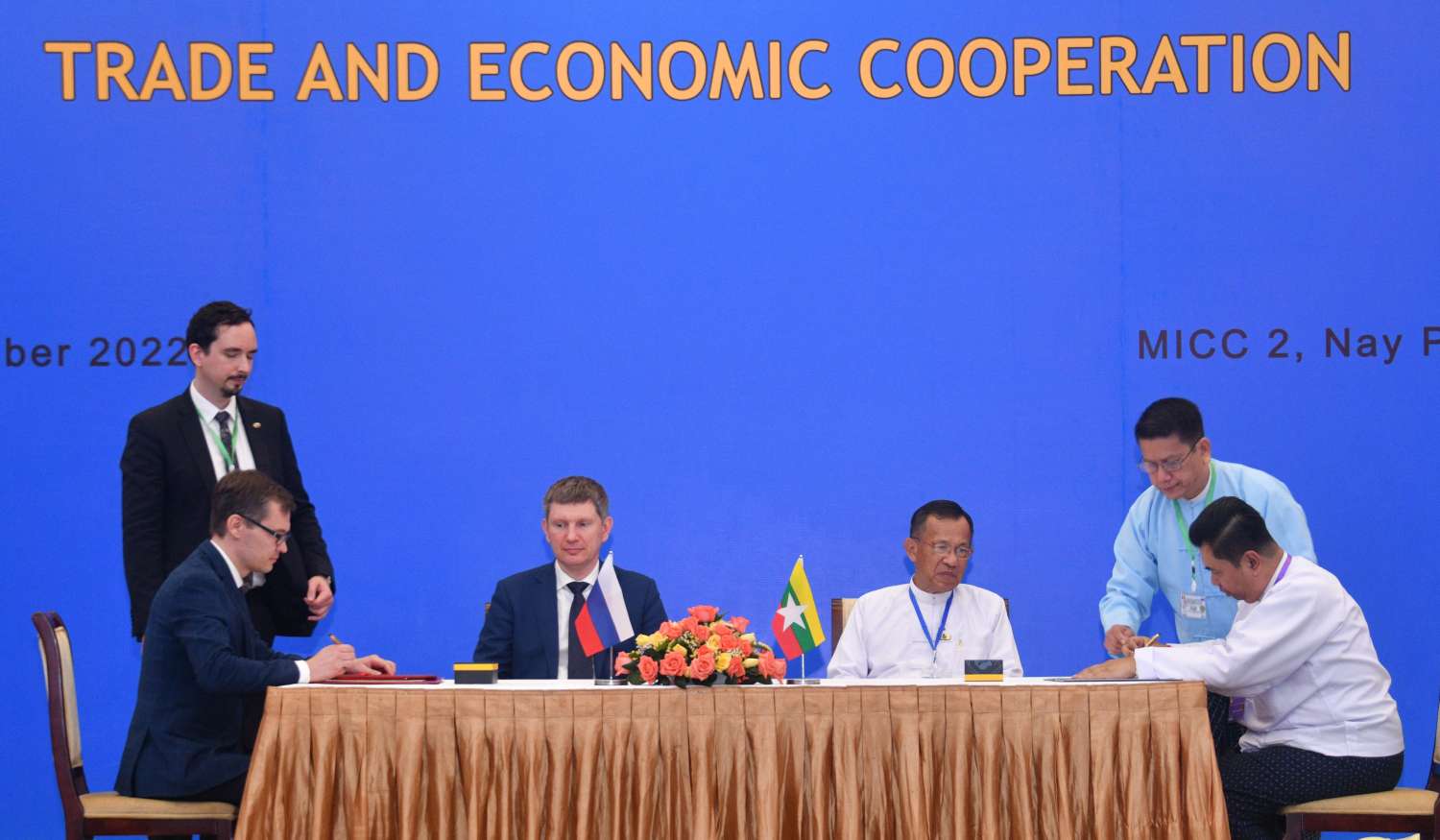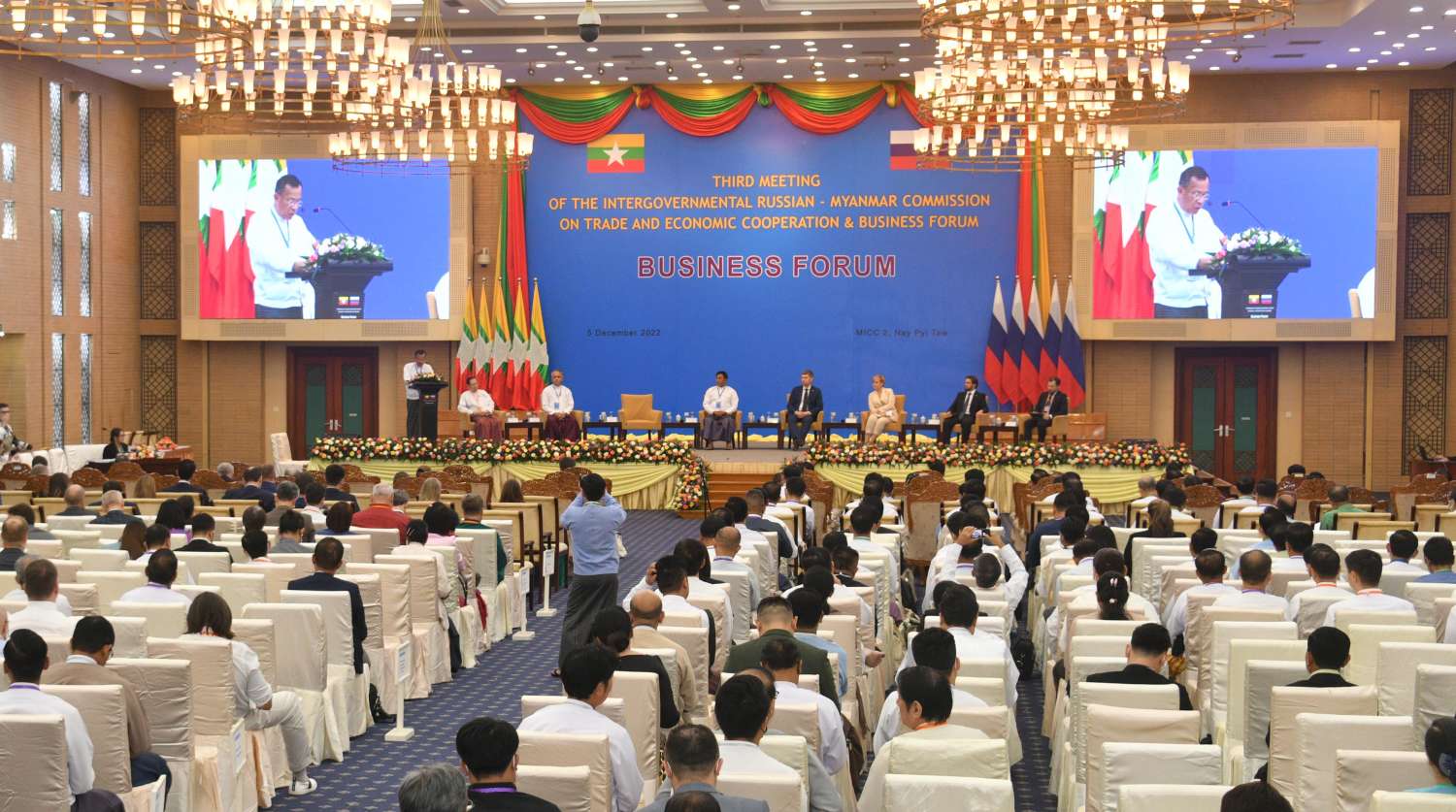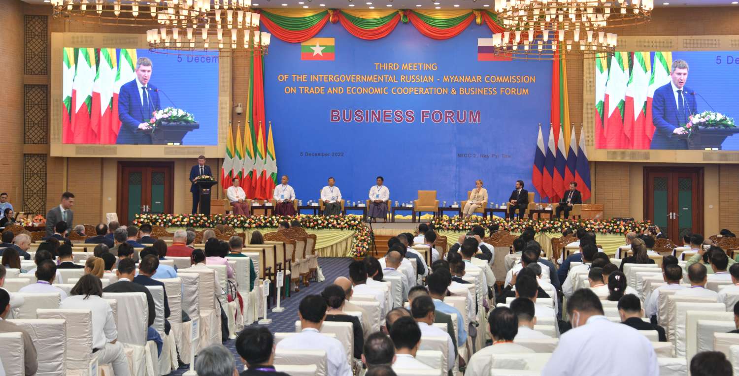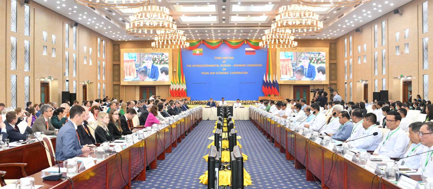 မြန်မာ-ရုရှား နှစ်နိုင်ငံအကြား ကုန်သွယ်မှုနှင့် စီးပွားရေးပူးပေါင်းဆောင်ရွက်မှုများ ပိုမိုတိုးမြှင့်လာစေရန်ရည်ရွယ်၍ တတိယအကြိမ် ရုရှား-မြန်မာ အစိုးရအချင်းချင်း ကုန်သွယ်ရေးနှင့် စီးပွားရေးပူးပေါင်းဆောင်ရွက်ရေးဆိုင်ရာ ကော်မရှင်အစည်းအဝေးကို ယနေ့နံနက် ၁၀ နာရီက ပူးတွဲကော်မရှင်ဥက္ကဋ္ဌများဖြစ်ကြသော ရင်းနှီးမြှုပ်နှံမှုနှင့် နိုင်ငံခြားစီးပွားဆက်သွယ်ရေးဝန်ကြီးဌာန ပြည်ထောင်စုဝန်ကြီးနှင့် ရုရှားဖက်ဒရေးရှင်းနိုင်ငံ စီးပွားရေးဖွံ့ဖြိုးတိုးတက်မှုဝန်ကြီးတို့ဦးဆောင်၍ နေပြည်တော်ရှိ မြန်မာအပြည်ပြည်ဆိုင်ရာ ကွန်ဗင်းရှင်းဗဟိုဌာန (၂) ၌ ကျင်းပသည်။ တတိယအကြိမ် ရုရှား-မြန်မာ အစိုးရအချင်းချင်း ကုန်သွယ်ရေးနှင့် စီးပွားရေး ပူးပေါင်းဆောင်ရွက်ရေးဆိုင်ရာ ကော်မရှင်အစည်းအဝေးတွင် ရင်းနှီးမြှုပ်နှံမှုနှင့် နိုင်ငံခြားစီးပွားဆက်သွယ်ရေးဝန်ကြီးဌာန၊ ပြည်ထောင်စုဝန်ကြီး ဒေါက်တာကံဇော်နှင့် ရုရှားဘက်မှ ရုရှားဖက်ဒရေးရှင်းနိုင်ငံ၊ ရုရှားစီးပွားရေးဖွံ့ဖြိုးတိုးတက်မှုဝန်ကြီး H.E Mr. Maxim Reshetnikov တို့က အဖွင့်အမှာစကား ပြောကြားသည်။