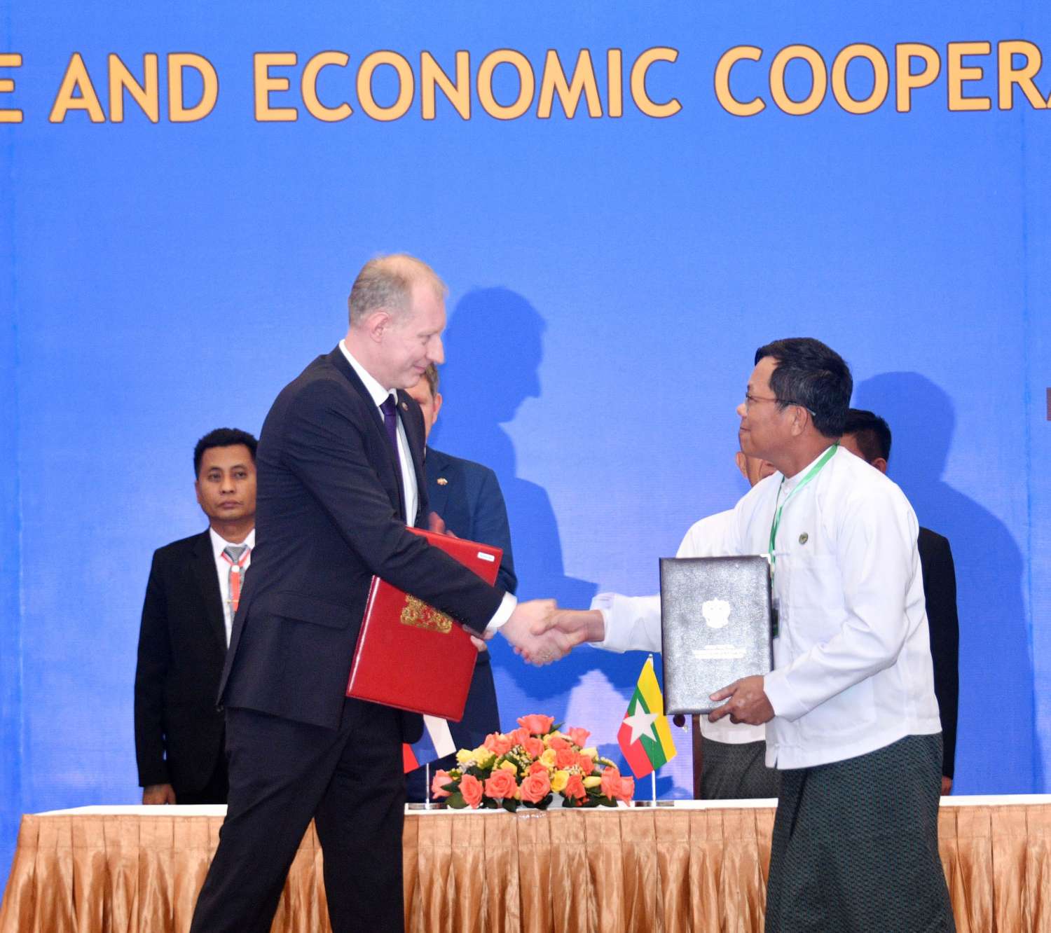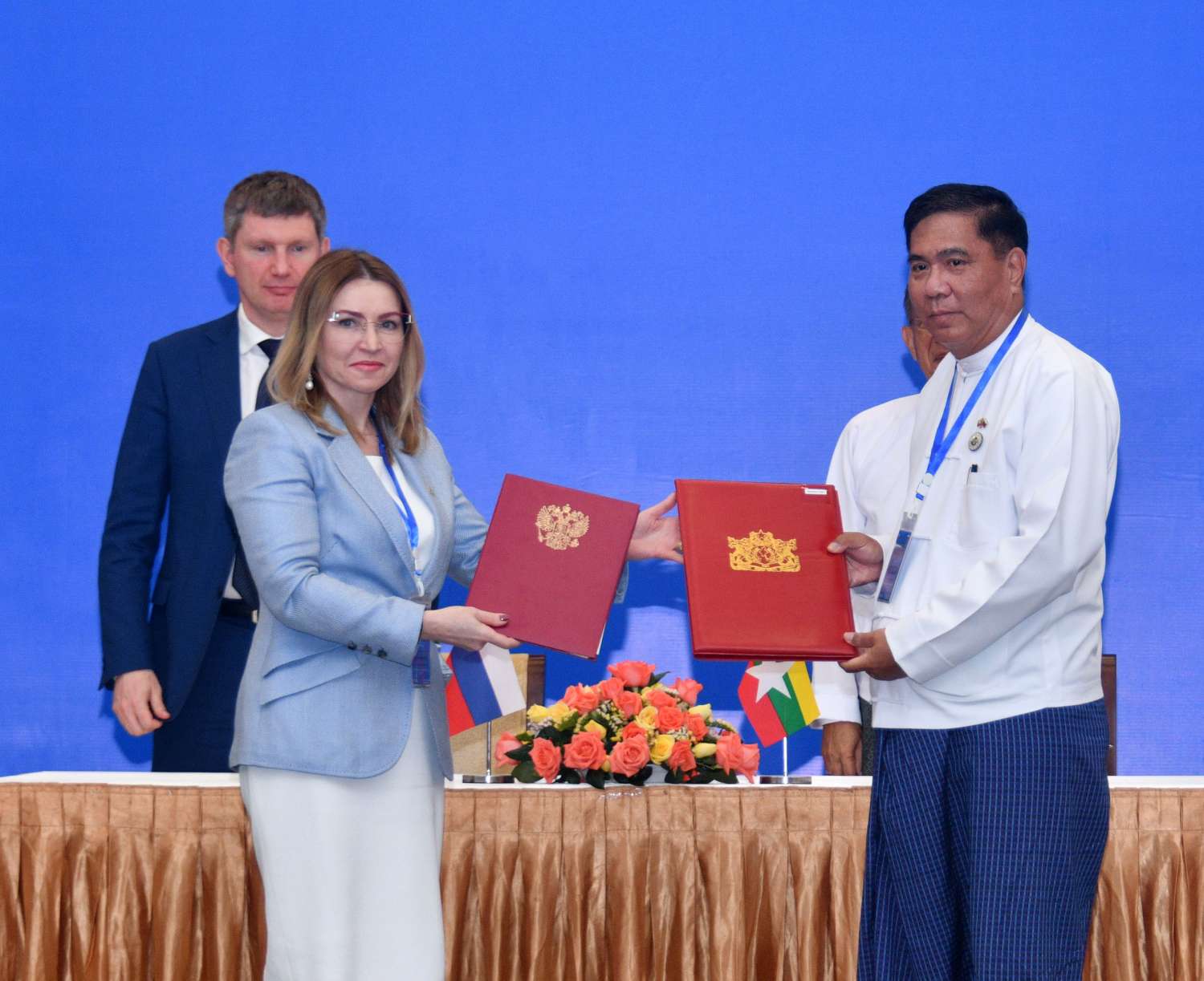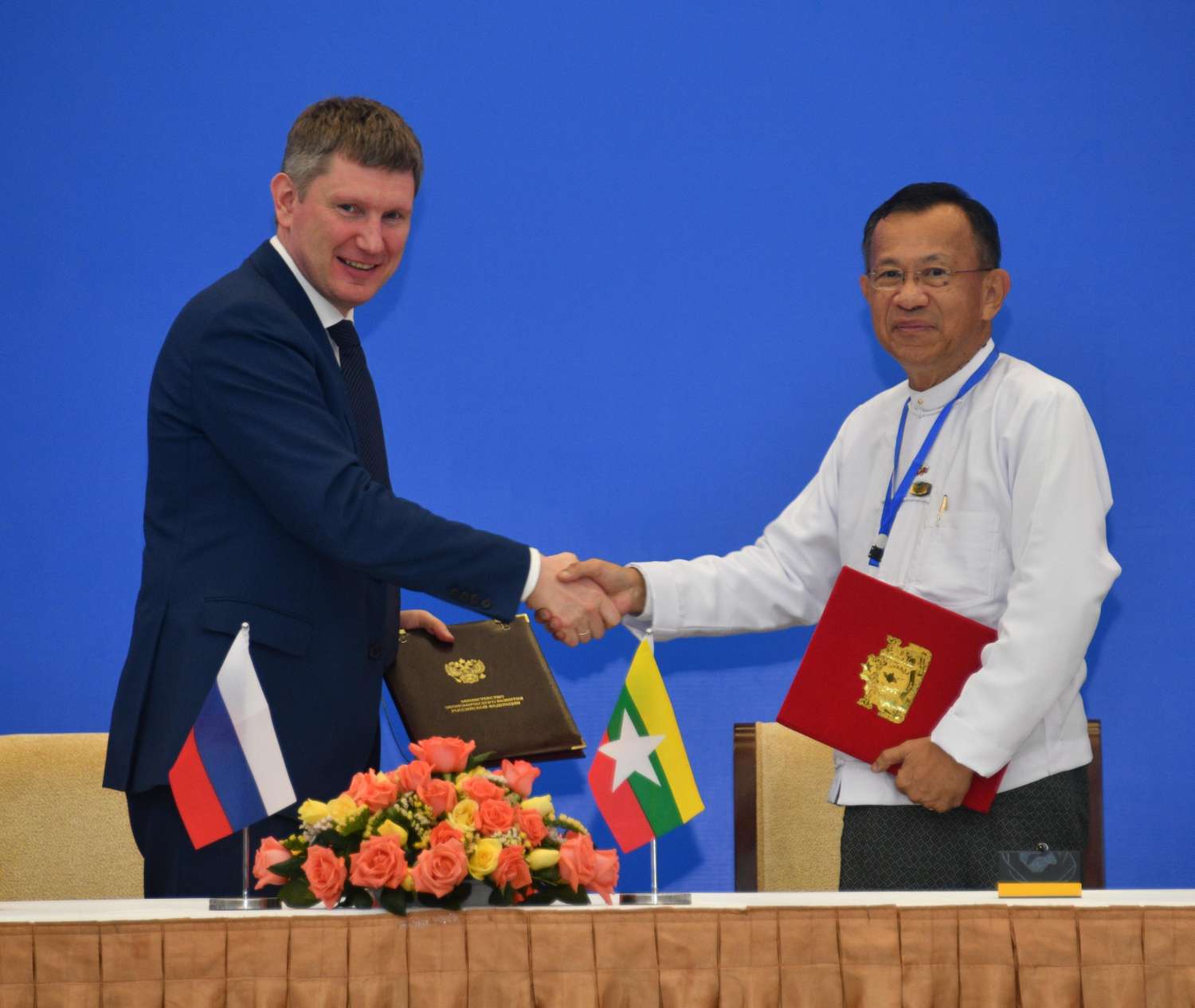 မြန်မာ-ရုရှား နှစ်နိုင်ငံအကြား ကုန်သွယ်မှုနှင့် စီးပွားရေးပူးပေါင်းဆောင်ရွက်မှုများ ပိုမိုတိုးမြှင့်လာစေရန်ရည်ရွယ်၍ တတိယအကြိမ် ရုရှား-မြန်မာ အစိုးရအချင်းချင်း ကုန်သွယ်ရေးနှင့် စီးပွားရေးပူးပေါင်းဆောင်ရွက်ရေးဆိုင်ရာ ကော်မရှင်အစည်းအဝေးကို ယနေ့နံနက် ၁၀ နာရီက ပူးတွဲကော်မရှင်ဥက္ကဋ္ဌများဖြစ်ကြသော ရင်းနှီးမြှုပ်နှံမှုနှင့် နိုင်ငံခြားစီးပွားဆက်သွယ်ရေးဝန်ကြီးဌာန ပြည်ထောင်စုဝန်ကြီးနှင့် ရုရှားဖက်ဒရေးရှင်းနိုင်ငံ စီးပွားရေးဖွံ့ဖြိုးတိုးတက်မှုဝန်ကြီးတို့ဦးဆောင်၍ နေပြည်တော်ရှိ မြန်မာအပြည်ပြည်ဆိုင်ရာ ကွန်ဗင်းရှင်းဗဟိုဌာန (၂) ၌ ကျင်းပသည်။ တတိယအကြိမ် ရုရှား-မြန်မာ အစိုးရအချင်းချင်း ကုန်သွယ်ရေးနှင့် စီးပွားရေး ပူးပေါင်းဆောင်ရွက်ရေးဆိုင်ရာ ကော်မရှင်အစည်းအဝေးတွင် ရင်းနှီးမြှုပ်နှံမှုနှင့် နိုင်ငံခြားစီးပွားဆက်သွယ်ရေးဝန်ကြီးဌာန၊ ပြည်ထောင်စုဝန်ကြီး ဒေါက်တာကံဇော်နှင့် ရုရှားဘက်မှ ရုရှားဖက်ဒရေးရှင်းနိုင်ငံ၊ ရုရှားစီးပွားရေးဖွံ့ဖြိုးတိုးတက်မှုဝန်ကြီး H.E Mr. Maxim Reshetnikov တို့က အဖွင့်အမှာစကား ပြောကြားသည်။