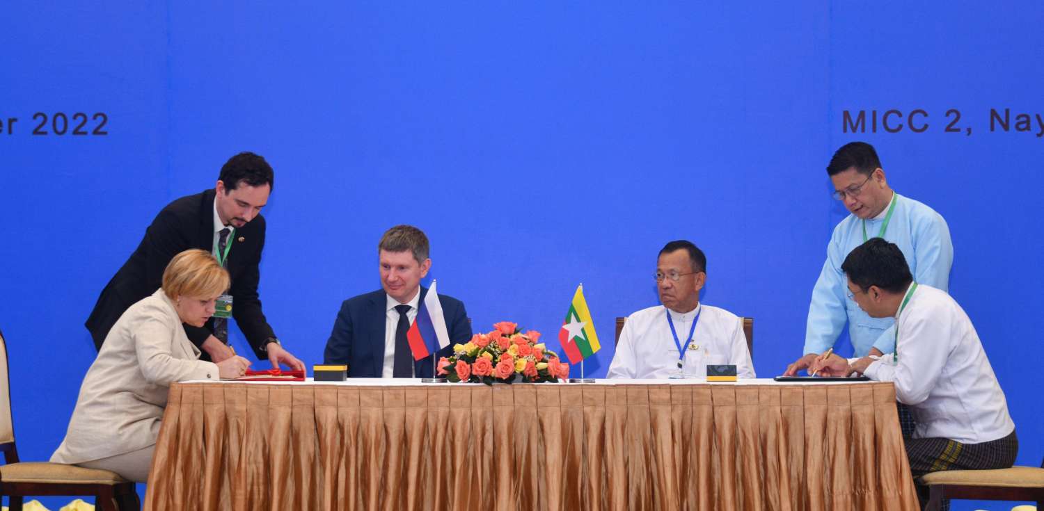 အစည်းအဝေး၌ ရင်းနှီးမြှုပ်နှံမှုနှင့် နိုင်ငံခြားစီးပွားဆက်သွယ်ရေးဝန်ကြီးဌာန ပြည်ထောင်စုဝန်ကြီးက ကြိုဆိုနှုတ်ခွန်းဆက်စကားပြောကြားရာတွင် ၂၀၂၂ ခုနှစ်သည် ရုရှား-မြန်မာ နှစ်နိုင်ငံဆက်ဆံရေးအတွက် အရေးပါသည့် နှစ်တစ်နှစ်ဖြစ်ပြီး နှစ်နိုင်ငံခေါင်းဆောင်များအကြား တွေ့ဆုံဆွေးနွေးမှုများရှိခဲ့ကာ သမိုင်းမှတ်တိုင်စိုက်ထူနိုင်ခဲ့ပါကြောင်း၊ ယနေ့အခမ်းအနားတွင်လည်း နှစ်နိုင်ငံအစိုးရအချင်းချင်း ပူးပေါင်းဆောင်ရွက်မှု သဘောတူညီချက် (MOU) များကိုလည်း လက်မှတ်ရေးထိုးနိုင်ခဲ့ပြီး စီးပွားရေးမိတ်ဖက်ကောင်းများအဖြစ် ပူးပေါင်းဆောင် ရွက်နိုင်မည့် အခွင့်အလမ်းများကို မြှင့်တင်ခဲ့ပါကြောင်း၊ ယခု ရုရှားကိုယ်စားလှယ်အဖွဲ့၏ ခရီးစဉ် အတွင်း မြန်မာနိုင်ငံမှ ရရှိနိုင်မည့် စီးပွားရေးဆိုင်ရာ အခွင့်အလမ်းများကို ကောင်းစွာနားလည် ရှုမြင်နိုင်မည်ဟု မျှော်လင့်ပါကြောင်း ပြောကြားသည်။
