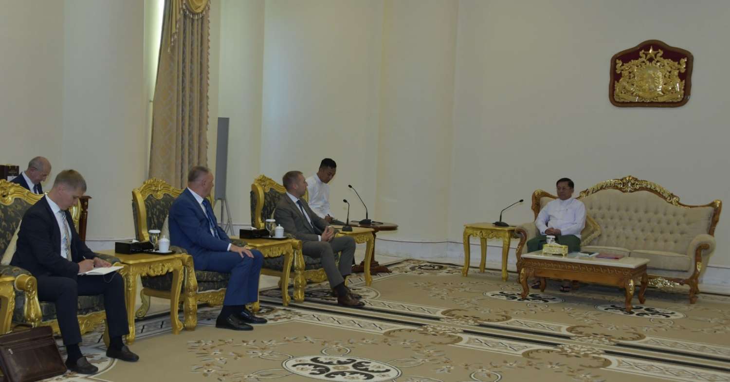 နိုင်ငံတော်စီမံအုပ်ချုပ်ရေးကောင်စီဥက္ကဋ္ဌ နိုင်ငံတော်ဝန်ကြီးချုပ် ဗိုလ်ချုပ်မှူးကြီးမင်းအောင်လှိုင်ထံ ရုရှားဖက်ဒေရေးရှင်းနိုင်ငံ ၊ နိုင်ငံခြားစီးပွားရေးဆိုင်ရာအဖွဲ့အစည်း (JSC “Tyazhpromexport”) ၏ ညွှန်ကြားရေးမှူးချုပ် Mr. Sergey Egorov ဦးဆောင်သည့် ကိုယ်စားလှယ်အဖွဲ့က ယနေ့မွန်းလွဲပိုင်းတွင် နေပြည်တော်ရှိ နိုင်ငံတော်စီမံအုပ်ချုပ်ရေးကောင်စီဥက္ကဋ္ဌရုံး ဧည့်ခန်းမ၌ လာရောက်ဂါရ၀ပြုတွေ့ဆုံသည်။