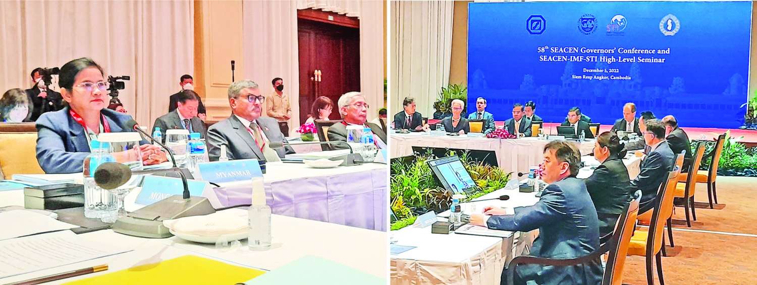 မွန်းလွဲပိုင်းတွင် (၄၂) ကြိမ်မြောက် အရှေ့တောင်အာရှဗဟိုဘဏ်များအဖွဲ့၏ ဂါဗာနာဘုတ်အဖွဲ့ (42nd SEACEN Board of Governors-BOG) အစည်းအဝေးကို ဆက်လက်ကျင်းပရာ SEACEN အမှုဆောင်ဒါရိုက်တာ Dr. Man-gal Goswami က SEACEN စင်တာ၏ ၂၀၂၂ ခုနှစ်အတွင်း နည်းဗျူဟာအစီအစဉ် အကောင်အထည်ဖော်မှုဆိုင်ရာ အခြေအနေ၊ ၂၀၂၃ ခုနှစ်တွင် ဆောင်ရွက်မည့် အဆိုပြုလုပ်ငန်းများ၊ ၂၀၂၃ ခုနှစ်အတွက် အဆိုပြုဘတ်ဂျက်လျာထားမှုနှင့် အခြားစီမံခန့်ခွဲမှုဆိုင်ရာ ကိစ္စရပ်များကို ဗဟိုဘဏ်ဥက္ကဋ္ဌများထံ တင်ပြလမ်းညွှန်မှုခံယူရာ အဖွဲ့ဝင်ဗဟိုဘဏ် (၁၉) ဘဏ်တို့မှ ဗဟိုဘဏ်ဥက္ကဋ္ဌများက ဆက်လက်ဆောင်ရွက်ရန်တို့ကို မှာကြားခဲ့ကြောင်း သိရသည်။