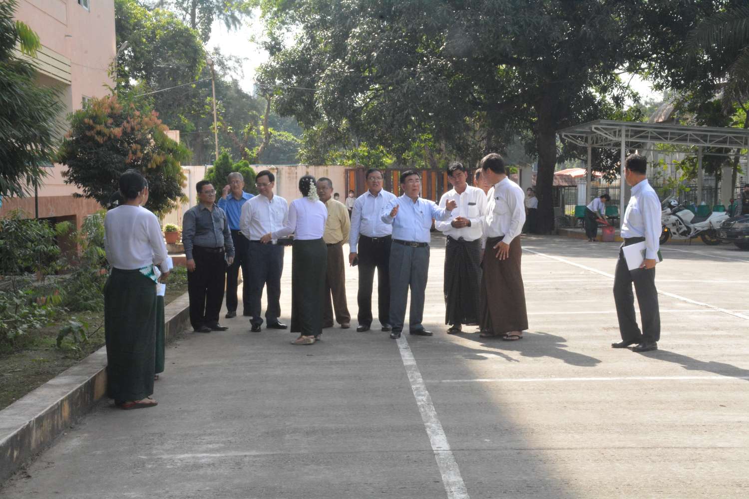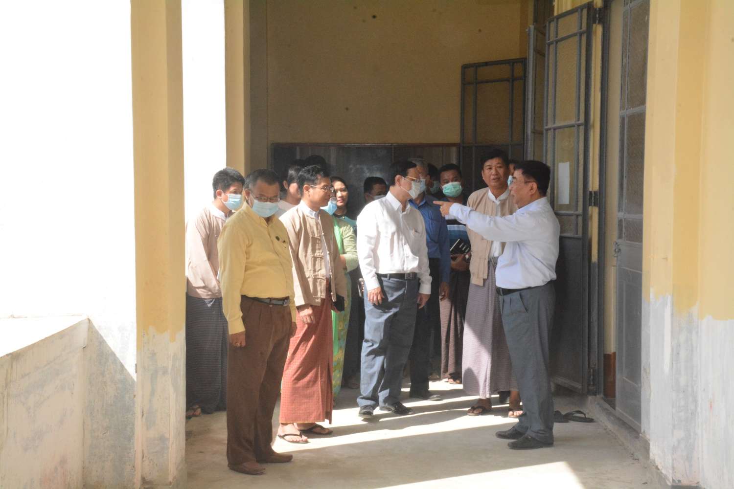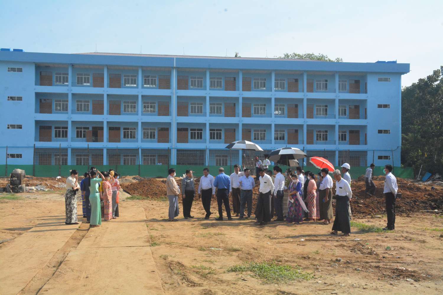 ထို့နောက် ပြည်ထောင်စုဝန်ကြီးနှင့်အဖွဲ့သည် ပညာရေးတက္ကသိုလ်စာသင်ဆောင် ဆောက်လုပ်ရေး လုပ်ငန်းခွင်သို့ သွားရောက်ကြည့်ရှုစစ်ဆေး၍ လိုအပ်သည်များကို မှာကြားသည်။