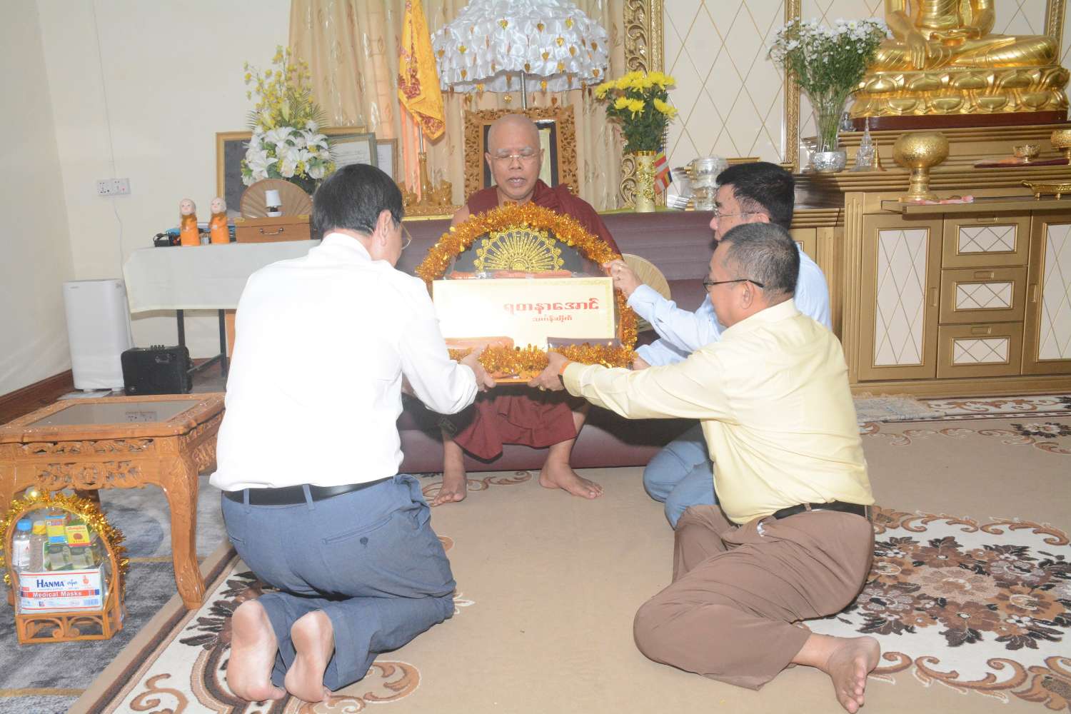 ဆက်လက်၍ ပြည်ထောင်စုဝန်ကြီးနှင့်အဖွဲ့သည် ရန်ကုန်တိုင်းဒေသကြီး မရမ်းကုန်းမြို့နယ်ရှိ အပြည်ပြည်ဆိုင်ရာထေရဝါဒ ဗုဒ္ဓသာသနာပြုတက္ကသိုလ် ပါမောက္ခချုပ် ဆရာတော် ဒေါက်တာအရှင်ဆေကိန္ဒအား ဖူးမြော်ကန်တော့ပြီး လှူဖွယ်ဝတ္ထုအစုစုတို့ကို ဆက်ကပ်လှူဒါန်းခဲ့ကြောင်း သိရသည်။