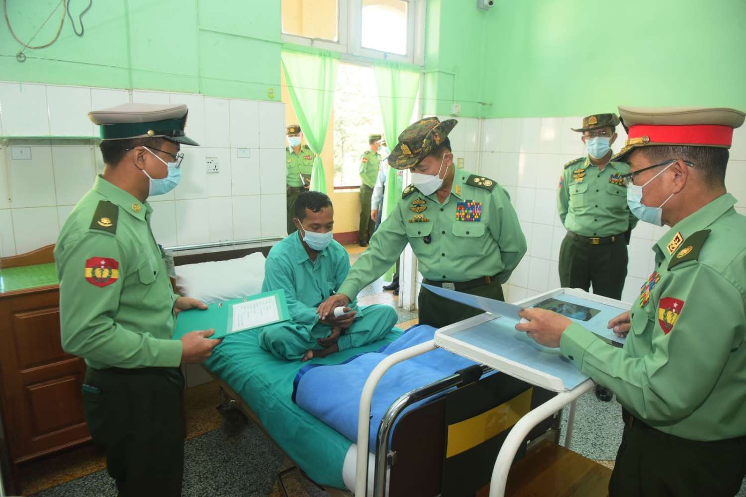 နိုင်ငံတော်စီမံအုပ်ချုပ်ရေးကောင်စီဒုတိယဥက္ကဋ္ဌ ဒုတိယတပ်မတော်ကာကွယ်ရေးဦးစီးချုပ် ကာကွယ်ရေးဦးစီးချုပ်(ကြည်း) ဒုတိယဗိုလ်ချုပ်မှူးကြီးစိုးဝင်းသည် ညှိနှိုင်းကွပ်ကဲရေးမှူး (ကြည်း၊ရေ၊လေ) ဗိုလ်ချုပ်ကြီးမောင်မောင်အေး၊ ကာကွယ်ရေးဦးစီးချုပ်ရုံးမှ တပ်မတော်အရာရှိကြီးများ၊ အလယ်ပိုင်းတိုင်းစစ်ဌာနချုပ်တိုင်းမှူးတို့လိုက်ပါ၍ ယနေ့နံနက်ပိုင်းတွင် မန္တလေးတိုင်းဒေသကြီး၊ ပြင်ဦးလွင်တပ်နယ်ရှိ နယ်မြေခံတပ်မတော်ဆေးရုံသို့ သွားရောက်၍ ဆေးရုံတက်ရောက် ကုသမှုခံယူလျက်ရှိသည့် အရာရှိ၊ စစ်သည်၊ မိသားစုများအား ကြည့်ရှုအားပေးစကား ပြောကြားသည်။