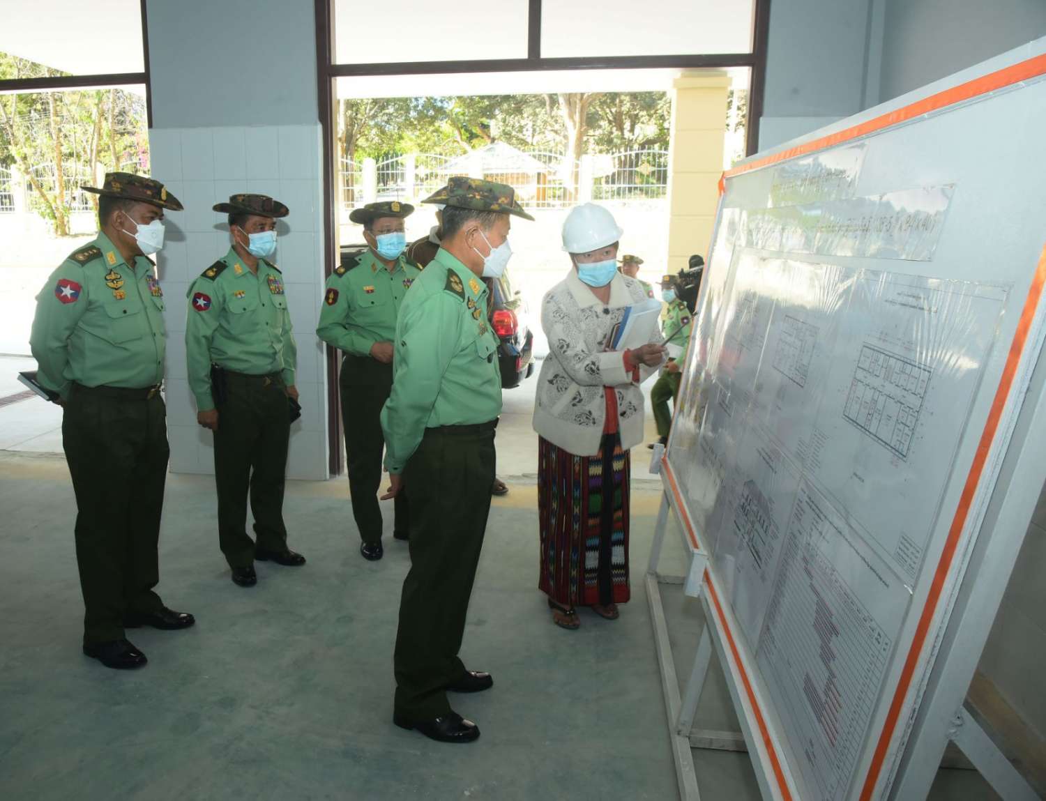 ယင်းနောက် နိုင်ငံတော်စီမံအုပ်ချုပ်ရေးကောင်စီ ဒုတိယဥက္ကဋ္ဌ ဒုတိယတပ်မတော်ကာကွယ်ရေးဦးစီးချုပ် ကာကွယ်ရေးဦးစီးချုပ်(ကြည်း)နှင့် အဖွဲ့ဝင်များသည် ဆေးရုံအတွင်း ဓာတ်ရောင်ခြည်နှင့် ကင်ဆာရောဂါကုသဆောင် တည်ဆောက်နေမှုအား သွားရောက်ကြည့်ရှုကြရာ တာဝန်ရှိသူများက လိုက်လံရှင်းလင်းပြသခဲ့ကြောင်း သတင်းရရှိသည်။
