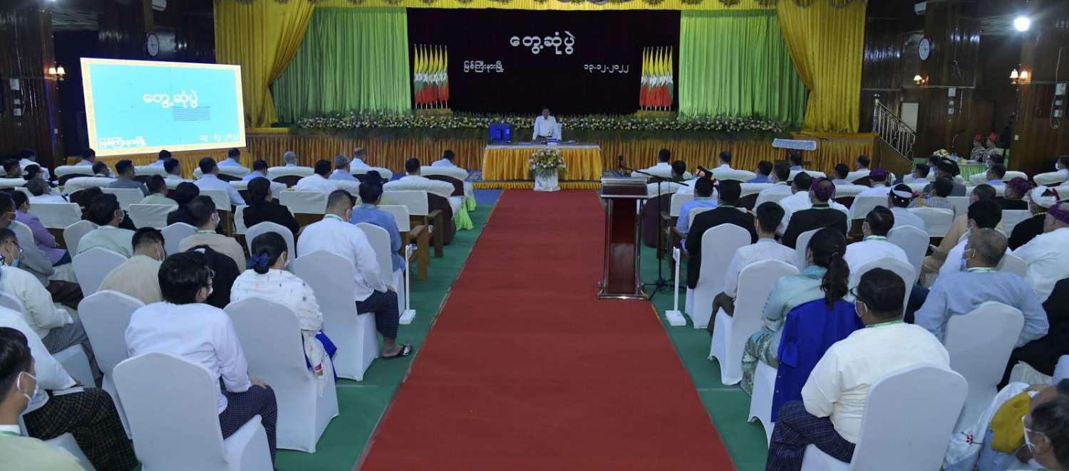 ဦးစွာ ပြည်နယ်ဝန်ကြီးချုပ်က ဒေသဆိုင်ရာအချက်အလက်များ၊ မြစ်ကြီးနားစီးပွားရေးဖွံ့ဖြိုးရေးဇုန် အကောင်အထည်ဖော်ဆောင်ရွက်လျက်ရှိမှု၊ စက်မှုရပ်ကွက်ကော်မတီဖွဲ့စည်းဆောင်ရွက်ထားရှိမှုနှင့် စက်မှုရပ်ကွက်အတွင်း စက်မှုကုန်ထုတ်လုပ်ငန်းများဆောင်ရွက်လျက်ရှိမှု၊ ကချင်ပြည်နယ်အတွင်း အသေးစား၊ အငယ်စားနှင့် အလတ်စားစီးပွားရေး (MSME) လုပ်ငန်းများ အကောင်အထည်ဖော်ဆောင်ရွက်နေမှု၊ ကချင်ပြည်နယ်အတွင်းရှိ MSME လုပ်ငန်းများဖွံ့ဖြိုးတိုးတက်ရေး ကူညီပံ့ပိုးမှုများဆောင်ရွက်လျက်ရှိမှု၊ MSME လုပ်ငန်းများဖွံ့ဖြိုးတိုးတက်ရေးအတွက် နိုင်ငံတော်မှ ချေးငွေများထုတ်ပေးမှုနှင့် လုပ်ငန်းတိုးချဲ့ဆောင်ရွက်လျက်ရှိမှု၊ One Village One Product ထုတ်လုပ်နိုင်ရေးဒေသအလိုက် ထုတ်ကုန်အမယ်သတ်မှတ်ဆောင်ရွက်လျက်ရှိမှု၊ နိုင်ငံ့စီးပွားမြှင့်တင်ရေးရန်ပုံငွေဖြင့် စိုက်ပျိုးမွေးမြူရေးလုပ်ငန်းများ အကောင်အထည်ဖော်ဆောင်ရွက်လျက်ရှိမှု စသည့်အခြေအနေများကို ရှင်းလင်းတင်ပြသည်။