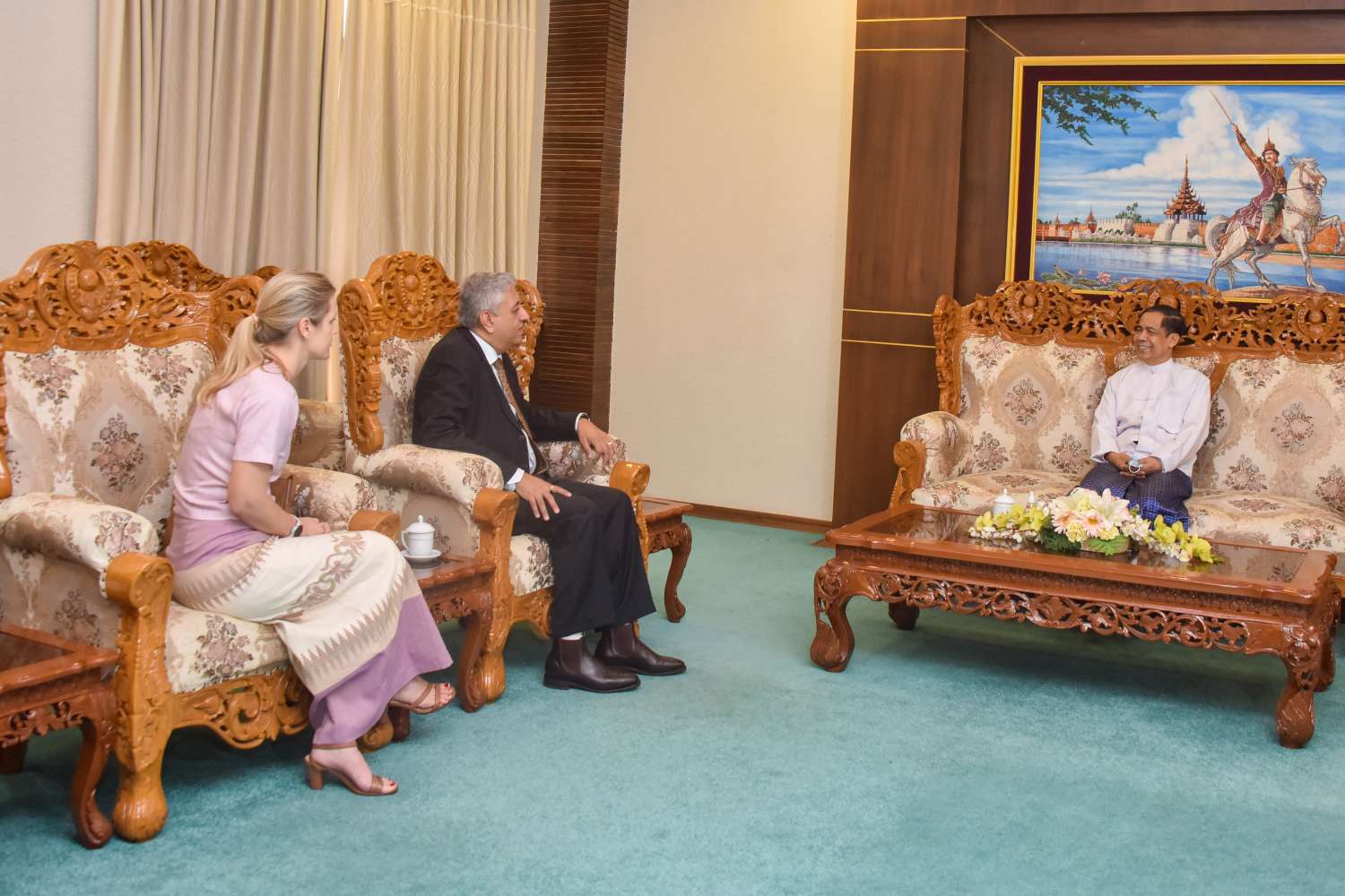အပြည်ပြည်ဆိုင်ရာ ပူးပေါင်းဆောင်ရွက်ရေးဝန်ကြီးဌာန၊ ပြည်ထောင်စုဝန်ကြီး ဦးကိုကိုလှိုင်သည် ဗန်ကောက်မြို့အခြေစိုက် ကုလသမဂ္ဂစီမံကိန်းဝန်ဆောင်မှုရုံး၏ အာရှဒေသဆိုင်ရာ ညွှန်ကြားရေးမှူး မစ္စတာဆန်ဂျေးမာသာကို ယနေ့နံနက် ၁၀ နာရီတွင် နေပြည်တော်ရှိ အပြည်ပြည်ဆိုင်ရာ ပူးပေါင်းဆောင်ရွက်ရေး ဝန်ကြီးဌာန၌ လက်ခံတွေ့ဆုံသည်။