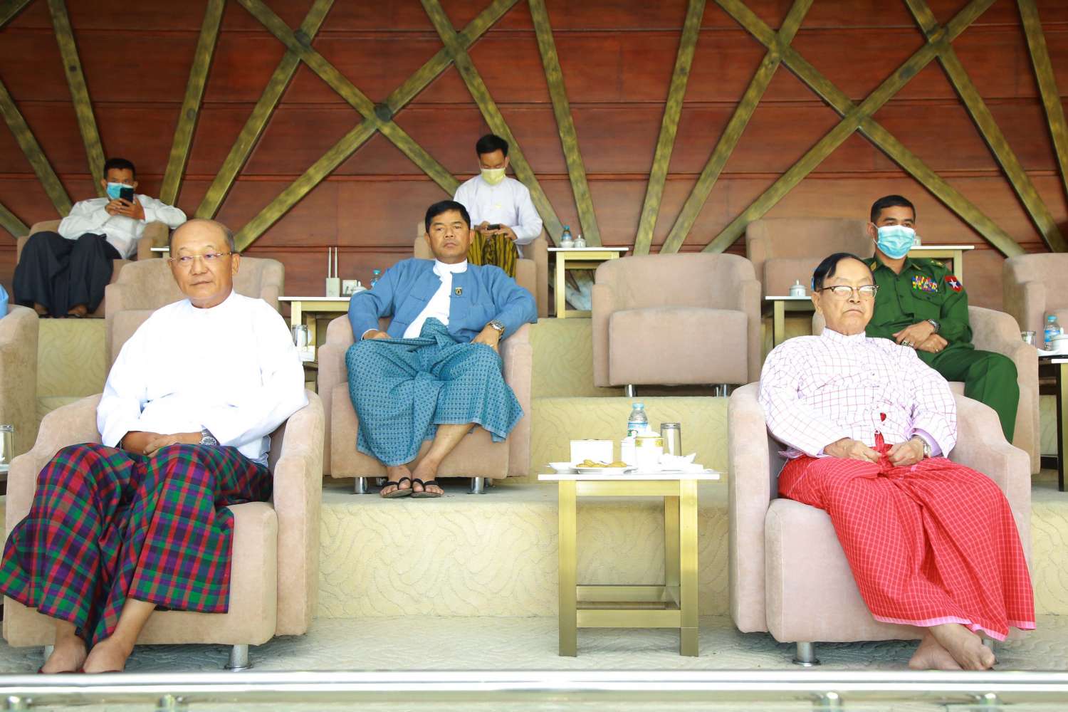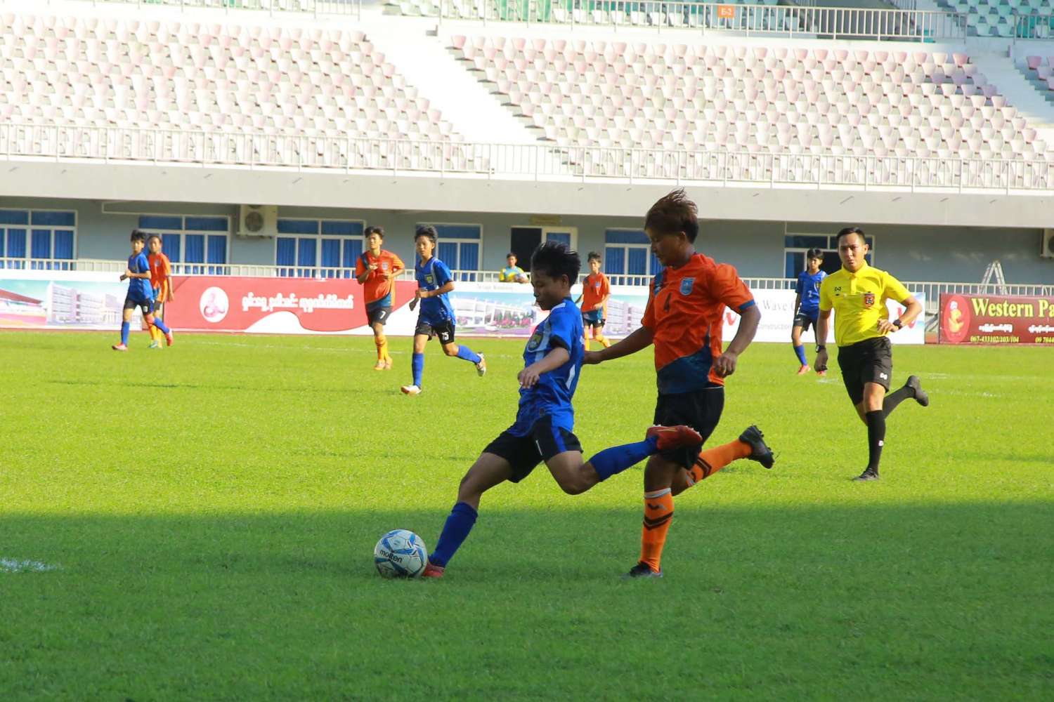 အားကစားနှင့် လူငယ်ရေးရာဝန်ကြီးဌာန၊ အားကစားနှင့်ကာယပညာဦးစီးဌာနနှင့် မြန်မာနိုင်ငံ ဘောလုံးအဖွဲ့ချုပ်တို့ ပူးပေါင်းကျင်းပသည့် ၂၀၂၃ ခုနှစ်၊ (၇၅)နှစ်မြောက် စိန်ရတု လွတ်လပ်ရေးနေ့ အထိမ်းအမှတ် နိုင်ငံတော်စီမံအုပ်ချုပ်ရေးကောင်စီဥက္ကဋ္ဌဖလား ပြည်နယ်နှင့်တိုင်းဒေသကြီး (အလွတ်တန်းဖိတ်ခေါ်) U-18 (အမျိုးသမီး) ဘောလုံးပြိုင်ပွဲ ဒုတိယအကြိုဗိုလ်လုပွဲပွဲစဉ်ကို ယနေ့မွန်းလွဲ (၃) နာရီတွင် နေပြည်တော်ဝဏ္ဏသိဒ္ဓိဘောလုံး အားကစားကွင်း၌ ဆက်လက်ကျင်းပရာ နိုင်ငံတော်စီမံအုပ်ချုပ်ရေးကောင်စီ အဖွဲ့ဝင်များဖြစ်ကြသော Jeng Phang နော်တောင်၊ ဒေါက်တာဗညားအောင်မိုး၊ ဒုတိယဝန်ကြီးများနှင့် ဌာနဆိုင်ရာများမှ တာဝန်ရှိပုဂ္ဂိုလ်များ၊ ဘောလုံးအားကစားဝါသနာရှင်များ တက်ရောက်ကြည့်ရှု အားပေးကြသည်။