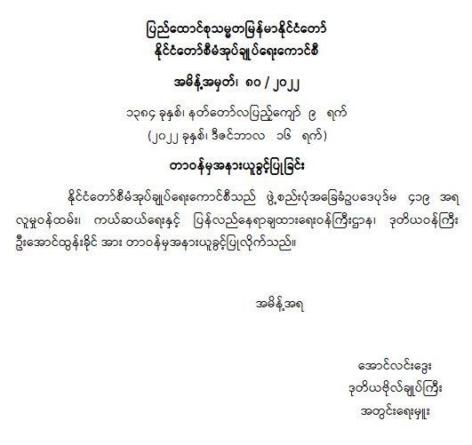 ဝန်ကြီးဌာန ကြေညာချက်များ