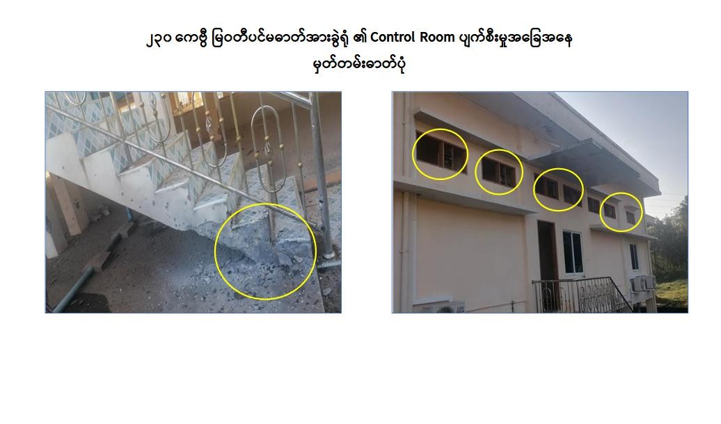 ထိုသို့ဆောင်ရွက်နေသည့်ကာလတွင် ကရင်ပြည်နယ်၊ မြဝတီမြို့၊ ကော့ကရိတ်မြို့၊ ကြာအင်းဆိပ်ကြီးမြို့၊ ကျုံဒိုးမြို့နှင့် အနီးဝန်းကျင်ဒေသများသို့ ဓာတ်အားဖြန့်ဖြူးပေးလျက်ရှိသော ၂၃၀ ကေဗွီ ၁၀၀ အမ်ဗွီအေ မြဝတီပင်မဓာတ်အားခွဲရုံအား (၁၆-၁၂-၂၀၂၂) ရက်နေ့ နံနက် (၁:၃၀) နာရီတွင် NUG လက်ဝေခံ PDF အကြမ်းဖက်သောင်းကျန်းသူများမှ ပစ်ခတ်တိုက်ခိုက်ဖျက်ဆီးခဲ့သဖြင့် အများပြည်သူသို့ ဓာတ်အားဖြန့်ဖြူးပေးလျက်ရှိသည့် (၅၀) အမ်ဗွီအေ ထရန်စဖော်မာ (၂) လုံး၊ (၂၀) အမ်ဗွီအေ Shut Reactor (၁) လုံး၊ Gas Circuit Breaker (၂) လုံး၊ Lightning Arrester (၂) လုံး၊ Potential Transformer (၂) လုံး၊ ဓာတ်အားကြိုးများ၊ ဓာတ်အားထိန်းချုပ်အဆောက်အအုံနှင့် မီးစက် အဆောက်အအုံတို့ ထိခိုက်ပျက်စီးခဲ့ပြီး ဓာတ်အားပြတ်တောက်မှုများဖြစ်ပေါ်ခဲ့သည်။