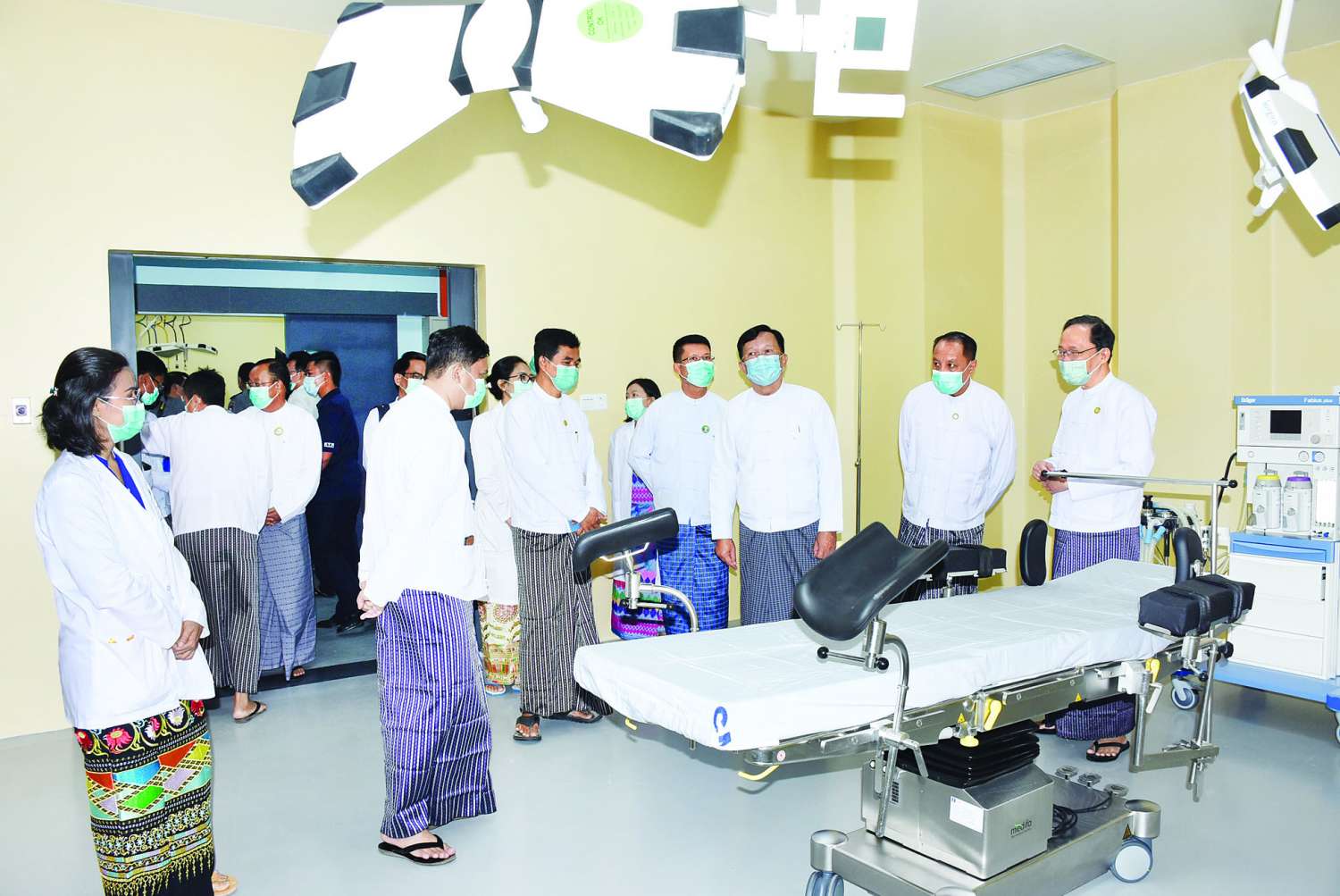ဆက်လက်၍ အထူးကြပ်မတ် ကုသခန်းများတွင် ခေတ်မီစက်ကိရိယာများ ပြင်ဆင်ထားရှိမှု၊ သွေးဘဏ်နှင့် သွေးလှူခန်း၊ ဓာတ်ခွဲခန်းများတွင် ခေတ်မီစက်ကိရိယာများ အသုံးပြု၍ လုပ်ငန်းများ ဆောင်ရွက်နေမှု တို့ကိုလည်းကောင်း၊ ခေတ်မီခွဲစိတ်ခန်းများတွင် ခေတ်မီစက်ကိရိယာများ တပ်ဆင်ထားရှိမှုနှင့် ခန္ဓာကိုယ်တွင်းကြည့် မှန်ပြောင်းများ ပြင်ဆင်ထားရှိမှုများ၊ သားဖွား/မီးယပ် ကုသဆောင်တွင် သားဖွားခန်းများနှင့်မီးဖွားပြီး လူနာခန်းများ ပြင်ဆင်ထားရှိမှုများ၊ ကလေးကုသဆောင်တွင် ကလေးများစိတ်ချမ်းမြေ့ပျော်ရွှင်စွာဖြင့် ဆေးကုသမှုခံယူနိုင်ရန် ကလေးအထူးကုသဆောင်နှင့် မွေးကင်းစကလေး ကြပ်မတ်ကုသဆောင် ပြင်ဆင်ထားရှိမှုများ၊ သီးသန့်လူနာခန်းများ၊ သံဃာတော်များအတွက် သီးသန့်ခန်းများ၊ ကွန်ပျူတာဓာတ်မှန်ခန်း၊ ဒစ်ဂျစ်တယ်ဓာတ်မှန်ခန်း၊ Ultrasound အခန်းများနှင့် အရေးပေါ် ဌာနတို့ကိုလည်းကောင်း၊ မသန်စွမ်းသူများ အဆင်ပြေချောမွေ့စွာ ဆေးကုသမှုခံယူနိုင်ရေး ဆောင်ရွက်ထားရှိမှုကို လည်းကောင်း လှည့်လည်ကြည့်ရှုကြသည်။