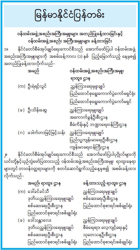 ဝန်ထမ်းအဖွဲ့အစည်းအကြီးအမှူးများ အတည်ပြုခန့်ထားခြင်းနှင့် ဝန်ထမ်းအဖွဲ့အစည်း အကြီးအမှူးများ ခန့်ထားခြင်း 12/20/2022