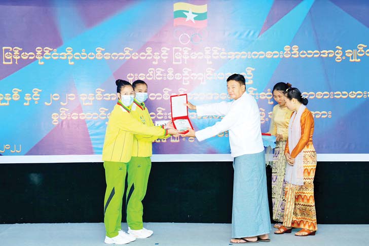 အခမ်းအနားတွင် မြန်မာနိုင်ငံအိုလံပစ်ကော်မတီဥက္ကဋ္ဌ အားကစားနှင့်လူငယ်ရေးရာဝန်ကြီးဌာန ပြည်ထောင်စုဝန်ကြီးဦးမင်းသိန်းဇံက (၃၁)ကြိမ်မြောက် အရှေ့တောင်အာရှအားကစားပြိုင်ပွဲ၊ အခြားနိုင်ငံတကာအားကစားပြိုင်ပွဲများနှင့် (၁၁)ကြိမ် မြောက် အာဆီယံ မသန်စွမ်းသူများ အားကစားပြိုင်ပွဲများတွင် နိုင်ငံတော်အတွက် ရွှေ၊ ငွေ၊ ကြေး ဆုတံဆိပ်များကို ဆွတ်ခူးပေးခဲ့သည့် နိုင်ငံ့ဂုဏ်ဆောင် အားကစားသမားများနှင့် အားကစားနည်းအလိုက် အုပ်ချုပ်သူ၊ နည်းပြများကို နိုင်ငံတော်က ထိုက်ထိုက် တန်တန် ဂုဏ်ပြုဆုချီးမြှင့်ခဲ့ပြီး ဖြစ်ကြောင်း၊ ၂၀၂၃ ခုနှစ် မေလတွင် ကမ္ဘောဒီးယားနိုင်ငံက အိမ်ရှင်အဖြစ် လက်ခံကျင်းပမည့် (၃၂)ကြိမ်မြောက် အရှေ့တောင် အာရှအားကစားပြိုင်ပွဲတွင် ရွှေ၊ ငွေ၊ ကြေး ဆုတံဆိပ်များကို ရရှိအောင် စွမ်းဆောင်ပေးနိုင်မည့် အားကစား သမားများကိုလည်း ထိုက်ထိုက်တန်တန် ဂုဏ်ပြုဆုများ ချီးမြှင့်ပေးနိုင်ရန် စီစဉ်ဆောင်ရွက်လျက် ရှိကြောင်း။