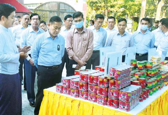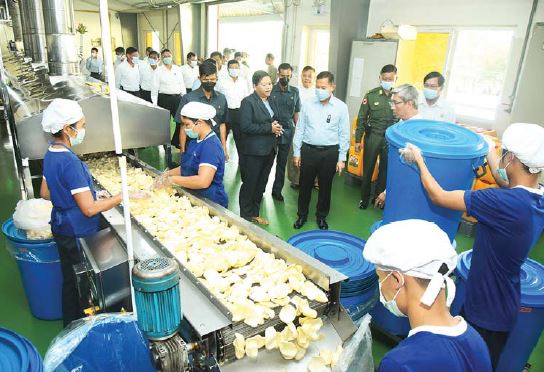 နိုင်ငံတော်စီမံအုပ်ချုပ်ရေးကောင်စီ ဒုတိယဥက္ကဋ္ဌ၊ ဒုတိယတပ်မတော် ကာကွယ်ရေးဦးစီးချုပ်၊ ကာကွယ်ရေးဦးစီးချုပ်(ကြည်း) ဒုတိယဗိုလ်ချုပ်မှူးကြီး စိုးဝင်းနှင့် အဖွဲ့ဝင်များသည် စက်ရုံလုပ်ငန်းခွင်များအတွင်း စားသောက်ကုန်ပစ္စည်းများ အဆင့်ဆင့်ထုတ်လုပ်၊ထုတ်ပိုး ဆောင်ရွက်နေမှုများအား လိုက်လံကြည့်ရှု လေ့လာ ခဲ့ကြပြီးလိုအပ်သည်များ ပေါင်းစပ်ညှိနှိုင်း ဆောင်ရွက်ပေးခဲ့ကြောင်း သတင်းရရှိသည်။