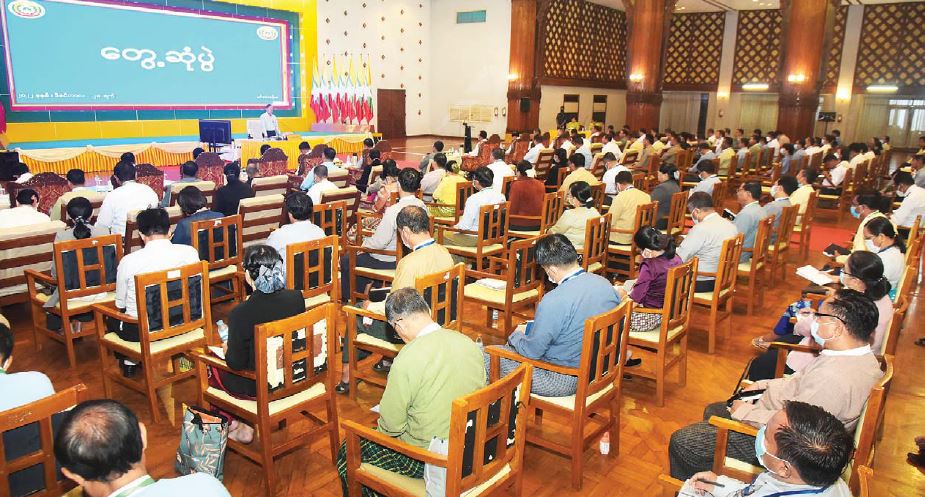 သမဝါယမအသင်းဖွဲ့စည်းမှုနှင့် ပတ်သက်၍ ဆောင်ရွက်နိုင်မှုအပေါ် ကျေနပ် အားရဖွယ် တွေ့ရှိရကြောင်း၊ ကုန်ထုတ်လုပ်မှု သမဝါယမအသင်း (၉၇၄)သင်း၊ ကုန်သွယ်မှု သမဝါယမအသင်း (၉၁၁)သင်းနှင့် ဝန်ဆောင်မှု သမဝါယမ အသင်း (၆၄၉) သင်း စုစုပေါင်း (၂၅၃၄)သင်း အထိဖွဲ့စည်း၍လုပ်ငန်းများ လည်ပတ်နေသည်ကို သိရ၍ ယခုထက်အောင် မြင်အောင် တိုးချဲ့ဆောင်ရွက်သွားရန် တိုက်တွန်းလိုကြောင်း၊ MSME လုပ်ငန်းများ၏ အဓိကအခက်အခဲများတွင် ချေးငွေရယူလိုမှုနှင့် ချေးငွေ သက်တမ်း တိုးလိုမှုကို တွေ့ရပြီး မှန်ကန်စွာဖြေရှင်းနိုင်ရန်မှာ ချေးငွေကို အချိန်မှန် ပေးဆပ်ရန်ပင် ဖြစ်ကြောင်း၊ ဒုတိယအချက်မှာ မြေနေရာရရှိလိုမှုဖြစ်ကြောင်း၊ မိမိတို့နိုင်ငံသည် ဆန်စပါးအဓိကထုတ်လုပ် သောနိုင်ငံဖြစ်၍ လယ်မြေနှင့် ပတ်သက်လျင် အခြားနည်းသုံးစွဲရန် ခွင့်မပြုကြောင်းကို နိုင်ငံတော်ဝန်ကြီးချုပ်က လမ်းညွှန်မှာကြားထား ပြီးဖြစ်ကြောင်း၊ အလားတူ စက်မှုဇုန်သည် ကုန်ထုတ်လုပ်မှုအတွက် ရည်ရွယ်ထူထောင်ထားခြင်းဖြစ်၍ လူနေအိမ်ရာနှင့် ရပ်ကွက်အဖြစ်သို့ ပြောင်းလဲ၍ မရပါကြောင်း၊ မဖြစ်သင့်ပါကြောင်း၊ တတိယအချက်မှာ လျှပ်စစ်ဓာတ်အား လိုအပ်ချက် ဖြစ်ပြီး နိုင်ငံ၏လက်ရှိ လျှပ်စစ်ဓာတ်အား ထုတ်လုပ်မှုအခြေအနေအရ လုံလောက်မှု မရှိသေးကြောင်း၊ တစ်နိုင်ငံလုံးအတိုင်းအတာအရ လျှပ်စစ်ဓာတ်အား လုံလောက်ဖူလုံစေရေး၊ ရေအားလျှပ်စစ်၊ ဆိုလာစနစ်မှစ၍ အနုမြူစွမ်းအင်သုံး အသေးစားလျှပ်စစ်ဓာတ်အား ထုတ်လုပ်နိုင်ရေးအထိ နိုင်ငံတော်မှ စီမံဆောင်ရွက် နေပါကြောင်း၊ လတ်တလောအခြေအ နေအရ လျှပ်စစ်ဓတ်အားမရှိလျင် ကုန်ထုတ်လုပ် မှုကိုလည်း ဆောင်ရွက်နိုင် မည်မဟုတ်သဖြင့် တစ်ပိုင်တစ်နိုင် လုပ်ငန်းရှင်တစ်ဦးချင်းဖြစ်စေ၊ အစုအဖွဲ့ဖြစ်စေ ဆိုလာစနစ်၊ လေအား လျှပ်စစ်နှင့် ဒီဇယ်သုံး လျှပ်စစ်ဓတ်အားများကိုလည်း တစ်ပိုင် တစ်နိုင်စီမံဆောင် ရွက်ကြရန်နှင့် လိုအပ်ချက် များကိုဖွဲ့စည်းထားပြီး အေဂျင်စီက လိုအပ်သလိုပေါင်းစပ်ညှိနှိုင်းပေးရန် လိုကြောင်း။