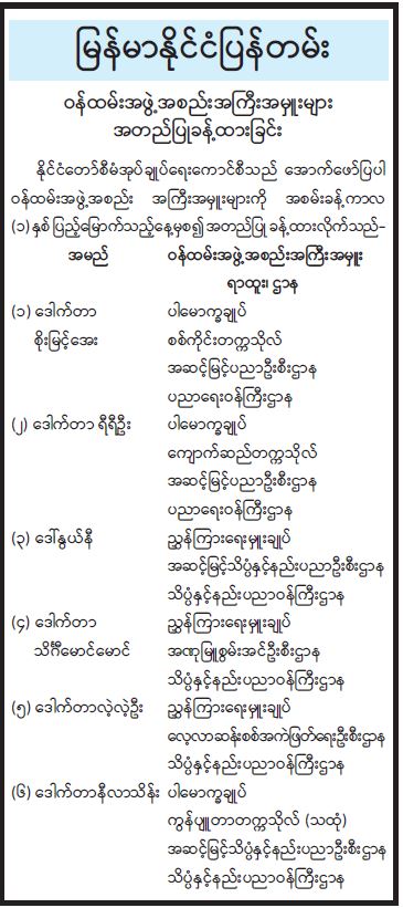 ဝန်ကြီးဌာန ကြေညာချက်များ