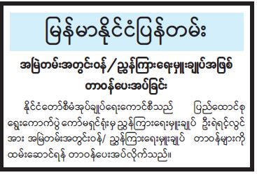 ဦးစီးဌာနနှင့် လုပ်ငန်းများ၏ ကြေညာချက်များ