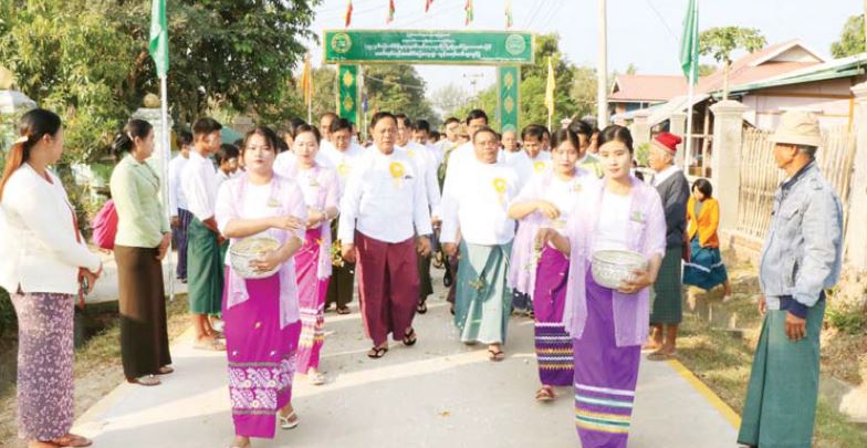 ထို့နောက် ပြည်ထောင်စုဝန်ကြီး ဦးလှမိုး၊ နေပြည်တော်ကောင်စီဥက္ကဋ္ဌ ဦးတင်ဦးလွင်နှင့် အမြဲ တမ်းအတွင်းဝန် ဦးခန့်ဇော်တို့က ကျေးရွာကွန်ကရစ် လမ်းသစ်များကို ဖဲကြိုးဖြတ် ဖွင့်လှစ်ပေးကြပြီး တက်ရောက်လာသော ဧည့်သည်တော်များအား (၇၅) နှစ်မြောက် စိန်ရတု လွတ်လပ်ရေးနေ့ လမ်းဖွင့်ပွဲ အထိမ်းအမှတ် လက်ဆောင်များ ပေးအပ်ကြကာကွန်ကရစ် လမ်းကို လှည့်လည်ကြည့်ရှုကြသည်။