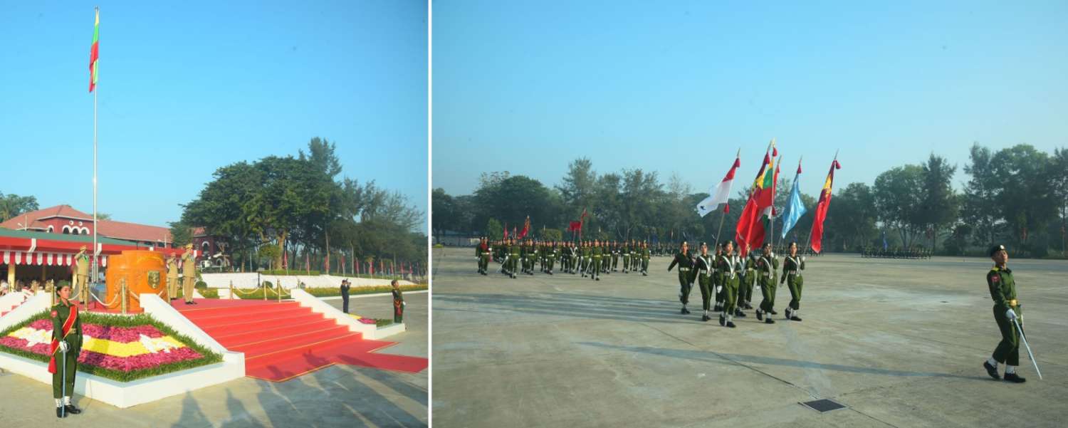 ဦးစွာ နိုင်ငံတော်စီမံအုပ်ချုပ်ရေးကောင်စီဒုတိယဥက္ကဋ္ဌ ဒုတိယတပ်မတော်ကာကွယ်ရေးဦးစီးချုပ် ကာကွယ်ရေးဦးစီးချုပ်(ကြည်း) ဒုတိယဗိုလ်ချုပ်မှူးကြီး သရေစည်သူစိုးဝင်းက သင်တန်းဆင်းတပ်ခွဲများ၏ အလေးပြုခြင်းကိုခံယူပြီးနောက် အလံတော်အဖွဲ့နှင့် ကျောင်းဆင်းတပ်ခွဲများအား စစ်ဆေးသည်။ ၎င်းနောက် ဒုတိယတပ်မတော်ကာကွယ်ရေးဦးစီးချုပ်အား ကျောင်းဆင်းတပ်ခွဲများက အနှေးလျှောက်၊ အမြန်လျှောက်ဖြင့် ချီတက်အလေးပြုကြသည်။