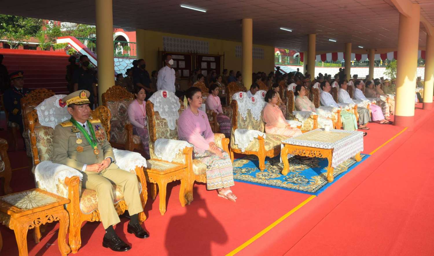 ထို့နောက် နိုင်ငံတော်စီမံအုပ်ချုပ်ရေးကောင်စီဒုတိယဥက္ကဋ္ဌ ဒုတိယတပ်မတော်ကာကွယ်ရေးဦးစီးချုပ် ကာကွယ်ရေးဦးစီးချုပ်(ကြည်း)နှင့် အဖွဲ့ဝင်များသည် သင်တန်းဆင်းသူနာပြုများနှင့်အတူ သဘင်ဆောင်၌ ပြည်သူ့ဆက်ဆံရေးနှင့် စိတ်ဓာတ်စစ်ဆင်ရေးညွှန်ကြားရေးမှူးရုံးကွပ်ကဲမှုအောက် မြဝတီတေးဂီတအဖွဲ့၏ ဂုဏ်ပြုဖျော်ဖြေတင်ဆက်မှုများကို ကြည့်ရှုအားပေးခဲ့ကြကြောင်း သတင်းရရှိသည်။