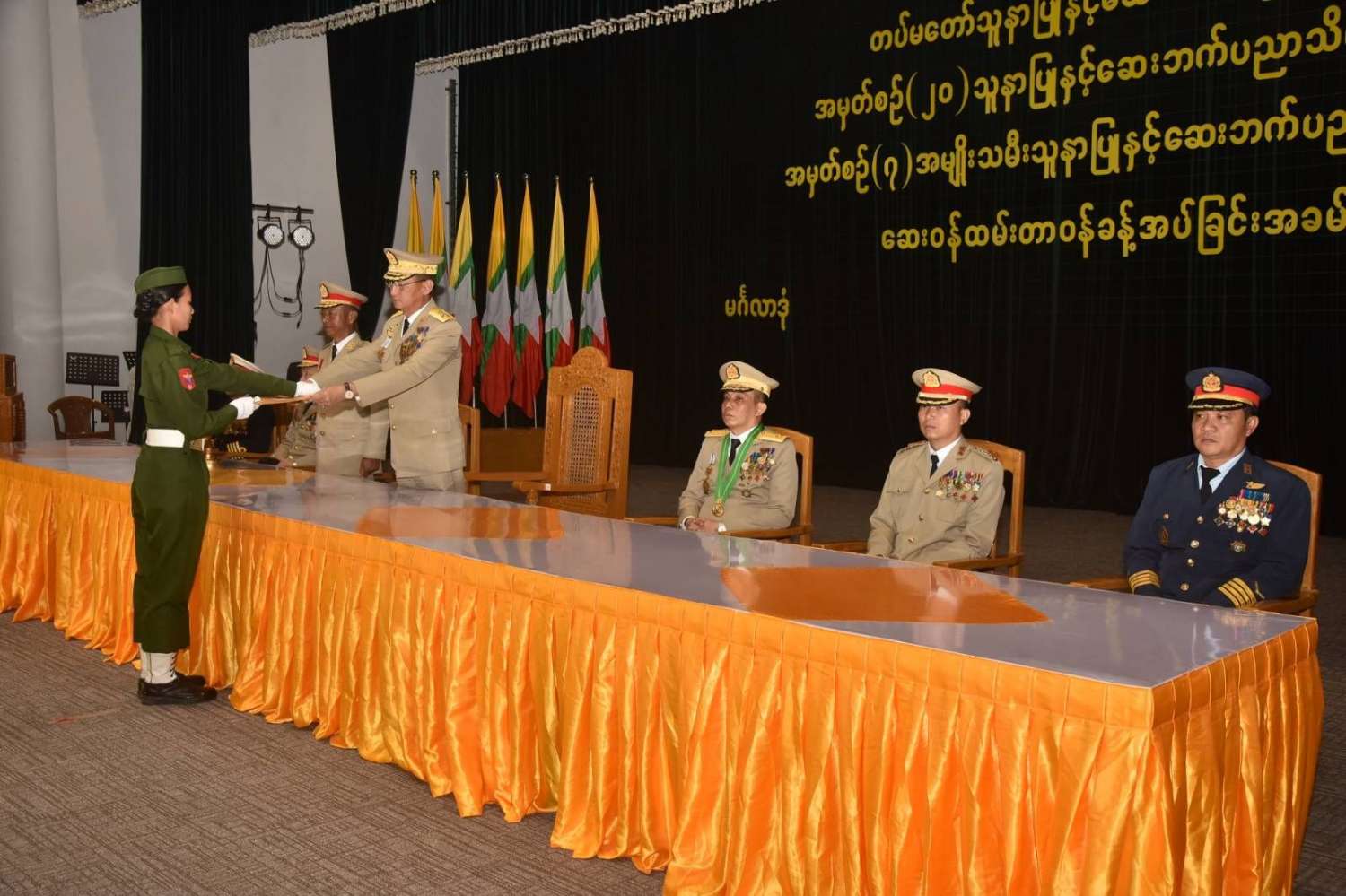 တပ်မတော်သူနာပြုနှင့်ဆေးဘက်ပညာတက္ကသိုလ်၏ သူနာပြုနှင့်ဆေးဘက်ပညာသိပ္ပံဘွဲ့သင်တန်းအမှတ်စဉ်(၂၀)နှင့် အမျိုးသမီးသူနာပြုနှင့်ဆေးဘက်ပညာသိပ္ပံဘွဲ့သင်တန်းအမှတ်စဉ်(၇)တို့မှ သင်တန်းဆင်းသင်တန်းသား၊ သင်တန်းသူများအား ဆေးဝန်ထမ်းတာဝန် ခန့်အပ်ခြင်းအခမ်းအနားကို ယနေ့နံနက်ပိုင်းက ရန်ကုန်တိုင်းဒေသကြီး၊ မင်္ဂလာဒုံမြို့နယ်ရှိ တပ်မတော်သူနာပြုနှင့်ဆေးဘက်ပညာတက္ကသိုလ် ဘွဲ့နှင်းသဘင်ခန်းမ၌ကျင်းပရာ ကာကွယ်ရေးဦးစီးချုပ်ရုံး(ကြည်း)မှ စစ်ရေးချုပ်ဒုတိယဗိုလ်ချုပ်ကြီးစိုးမင်းဦး၊ ကာကွယ်ရေးဦးစီးချုပ်ရုံးမှ တပ်မတော်အရာရှိကြီးများ၊ တပ်မတော်သူနာပြုနှင့် ဆေးဘက်ပညာတက္ကသိုလ်ကျောင်းအုပ်ကြီး ဗိုလ်မှူးချုပ်ဝင်းဗိုလ်နှင့် ကျောင်းဆင်းသင်တန်းသား၊ သင်တန်းသူများ တက်ရောက်ကြသည်။