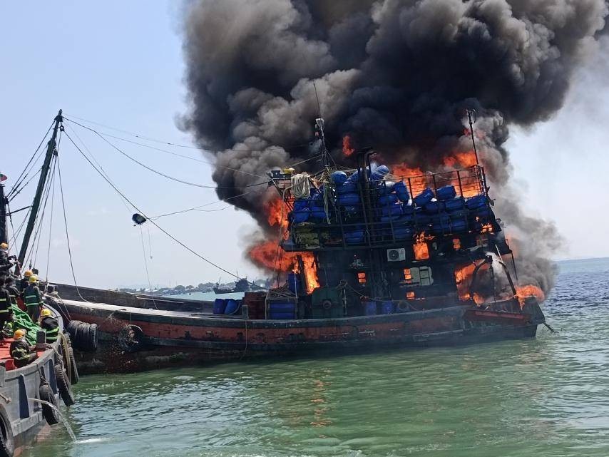 တနင်္သာရီတိုင်းဒေသကြီး၊ မြိတ်မြို့အနီး မြန်မာ့ပင်လယ်ပြင်အတွင်း လုံခြုံရေးဆောင်ရွက်နေသော တပ်မတော်(ရေ)မှ တပ်ဖွဲ့ဝင်များသည် မြိတ်မြို့၏ အနောက်မြောက်ဘက် ရေမိုင် ၀ ဒသမ ၅ မိုင်အနီး ငါးဖမ်းဝါးလတ်လှေတစ်စီး မီးလောင်နေကြောင်း သတင်းအရ ၂၀၂၂ ခုနှစ်၊ ဒီဇင်ဘာ ၃၁ ရက် ၁၂ နာရီခန့်တွင် သွားရောက်ရှာဖွေစိစစ်ခဲ့ရာ သုခမောင်(၇)အမည်ရှိ ငါးဖမ်းဝါးလတ်လှေ ၁ စီး မီးလောင်နေသည်ကိုတွေ့ရှိခဲ့သဖြင့် မြန်မာနိုင်ငံရေကြောင်းရဲတပ်ဖွဲ့မှရေယာဉ်များ၊ မြန်မာနိုင်ငံမီးသတ်တပ်ဖွဲ့ဝင်များတင်ဆောင်ထားသည့် အရပ်ဘက်ရေယာဉ်များနှင့်အတူ ဝိုင်းဝန်းမီးငြှိမ်းသတ်ခဲ့ပြီး လှေပေါ်ပါ လှေသား ၃ ဦးမှာ မီးလောင်ဒဏ်ရာများရရှိခဲ့သဖြင့် ဆေးကုသမှုခံယူရန်အတွက် မြိတ်မြို့၊ ပြည်သူ့ဆေးရုံကြီးသို့ ပို့ဆောင်ပေးခဲ့ကြောင်း သတင်းရရှိသည်။