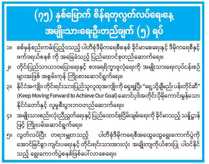 (၇၅) နှစ်မြောက် စိန်ရတုလွတ်လပ်ရေးနေ့ အမျိုးသားရေးဦးတည်ချက် (၅) ရပ်