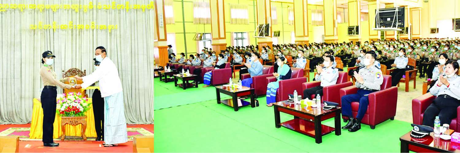 သင်တန်းဆင်းပွဲတွင် အဖွဲ့ဝင် ဦးဆန်းမြင့်က နိုင်ငံတော်တည်ဆောက်ရေးတွင် နိုင်ငံ့ဝန်ထမ်းများသည် အရေးပါသောအခန်းကဏ္ဍမှ ပါဝင်လျက်ရှိသဖြင့် အရည်အချင်း ပြည့်ဝကျွမ်းကျင်မှုရှိပြီး တာဝန်ကျေပွန်သော၊ စိတ်ဓာတ်နှင့် စည်းကမ်းကောင်းမွန်သည့် ဝန်ထမ်းကောင်းများအဖြစ် နိုင်ငံတော်ဖွံ့ဖြိုးတိုးတက်ရေးကို အရှိန်အဟုန်ကောင်းစွာ ပူးပေါင်းပါဝင်ဆောင်ရွက်သွားကြစေလိုကြောင်း၊ သင်တန်းဆင်းပြီးနောက်ပိုင်း အရာထမ်းများပီပီ မိမိအထက်အဆင့်အရာထမ်းများကို စွမ်းဆောင်ရည်ပြည့်ဝစွာဖြင့် ပံ့ပိုးကူညီပေးကြရင်း မိမိလက်အောက်အမှုထမ်းများကိုပါ သင်ကြားပြသဦးဆောင် လမ်းညွှန်ပေးနိုင်သော ဝန်ထမ်းကောင်းများအဖြစ်ကြိုးစားကြရန် တိုက်တွန်းမှာကြားပြီး ထူးချွန်ဆုရရှိသူများအား ဆုများချီးမြှင့်သည်။