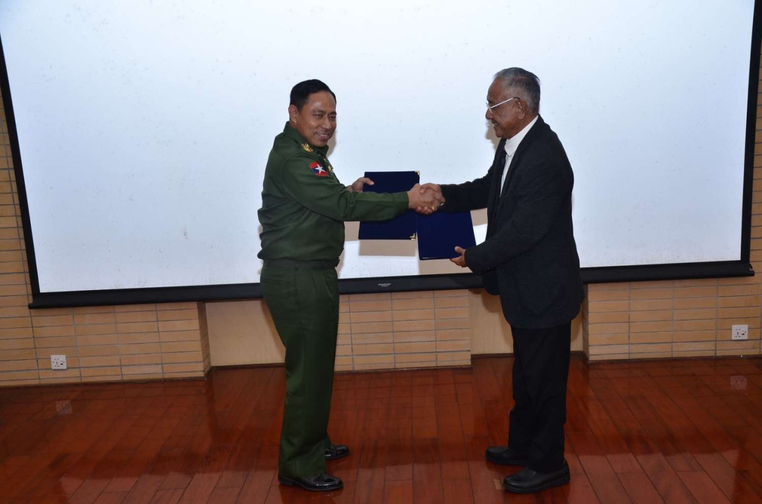 ယင်းနောက် တက်ရောက်လာကြသည့် တိုင်းရင်းသားလက်နက်ကိုင်အဖွဲ့များကိုယ်စား “ဝ” ပြည်သွေးစည်းညီညွတ်ရေးပါတီ (UWSP) မှ ဒုတိယဥက္ကဋ္ဌ ဦးလော့ယာကုနှင့် ငြိမ်းချမ်းရေးဆွေးနွေးရေးအဖွဲ့ခေါင်းဆောင် ဒုတိယဗိုလ်ချုပ်ကြီး ရာပြည့်တို့က နိဂုံးချုပ်အမှာစကား ပြောကြားခဲ့ကြပြီးနောက် လက်ဆောင်ပစ္စည်းများ အပြန်အလှန်ပေးအပ်ခဲ့ကြောင်း သိရသည်။