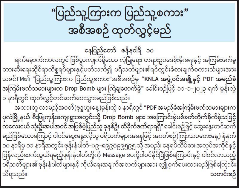 “ပြည်သူ့ကြားက ပြည်သူ့စကား” အစီအစဉ် ထုတ်လွှင့်မည်