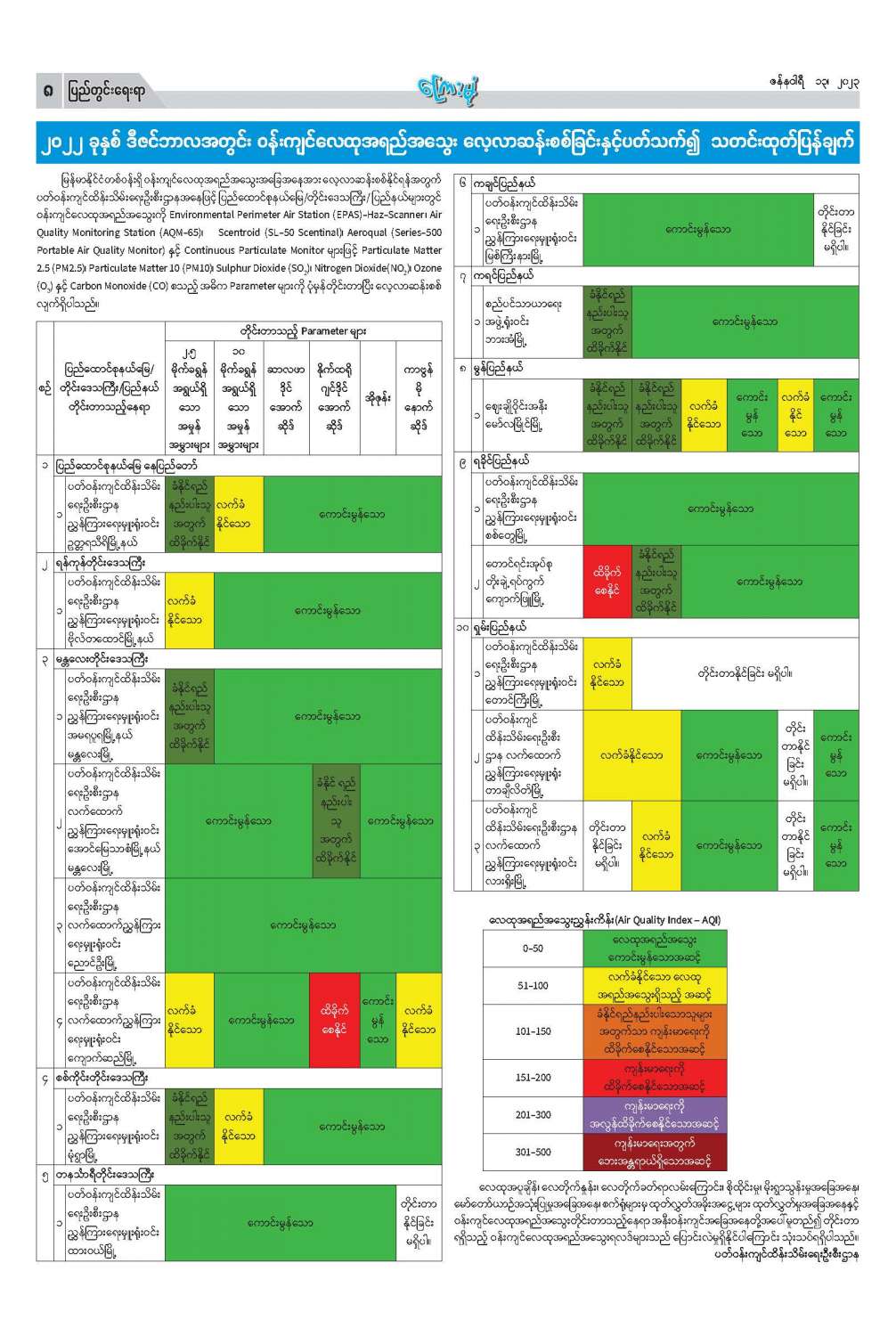 ၂၀၂၂ ခုနှစ် ဒီဇင်ဘာလအတွင်း ဝန်းကျင်လေထုအရည်အသွေး လေ့လာဆန်းစစ်ခြင်းနှင့် ပတ်သက်၍ သတင်းထုတ်ပြန်ချက် 01/13/2023