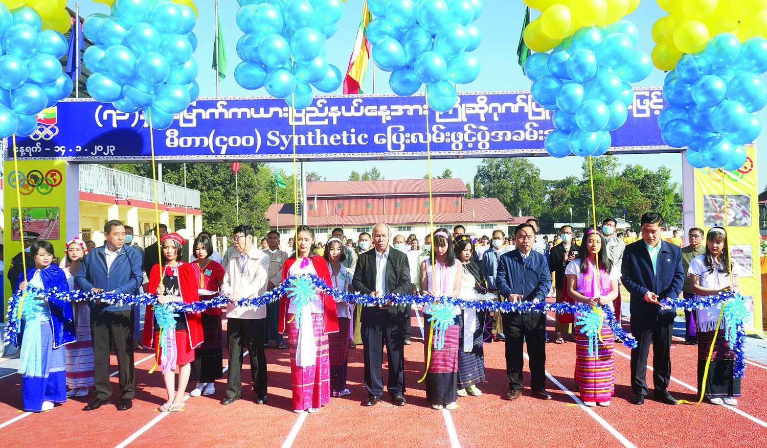 ထို့နောက် မီတာ (၄၀၀)Synthetic ပြေးလမ်းအား နိုင်ငံတော်စီမံအုပ်ချုပ်ရေးကောင်စီအဖွဲ့ဝင်များ၊ ပြည်ထောင်စုဝန်ကြီးများနှင့် ပြည်နယ်ဝန်ကြီးချုပ်တို့က ဖဲကြိုးဖြတ်ဖွင့်လှစ်ပေးပြီး အခမ်းအနားသို့ တက်ရောက်လာကြသည့် ဌာနဆိုင်ရာများ၊ တိုင်းရင်းသားရိုးရာယဉ်ကျေးမှုအဖွဲ့များ၊ အားကစားသမားများနှင့်အတူ မှတ်တမ်းတင်ဓာတ်ပုံရိုက်ပြီး မီတာ ၄၀၀ ပြေးလမ်းနှင့် အားကစားကွင်းကို ကြည့်ရှုကြသည်။