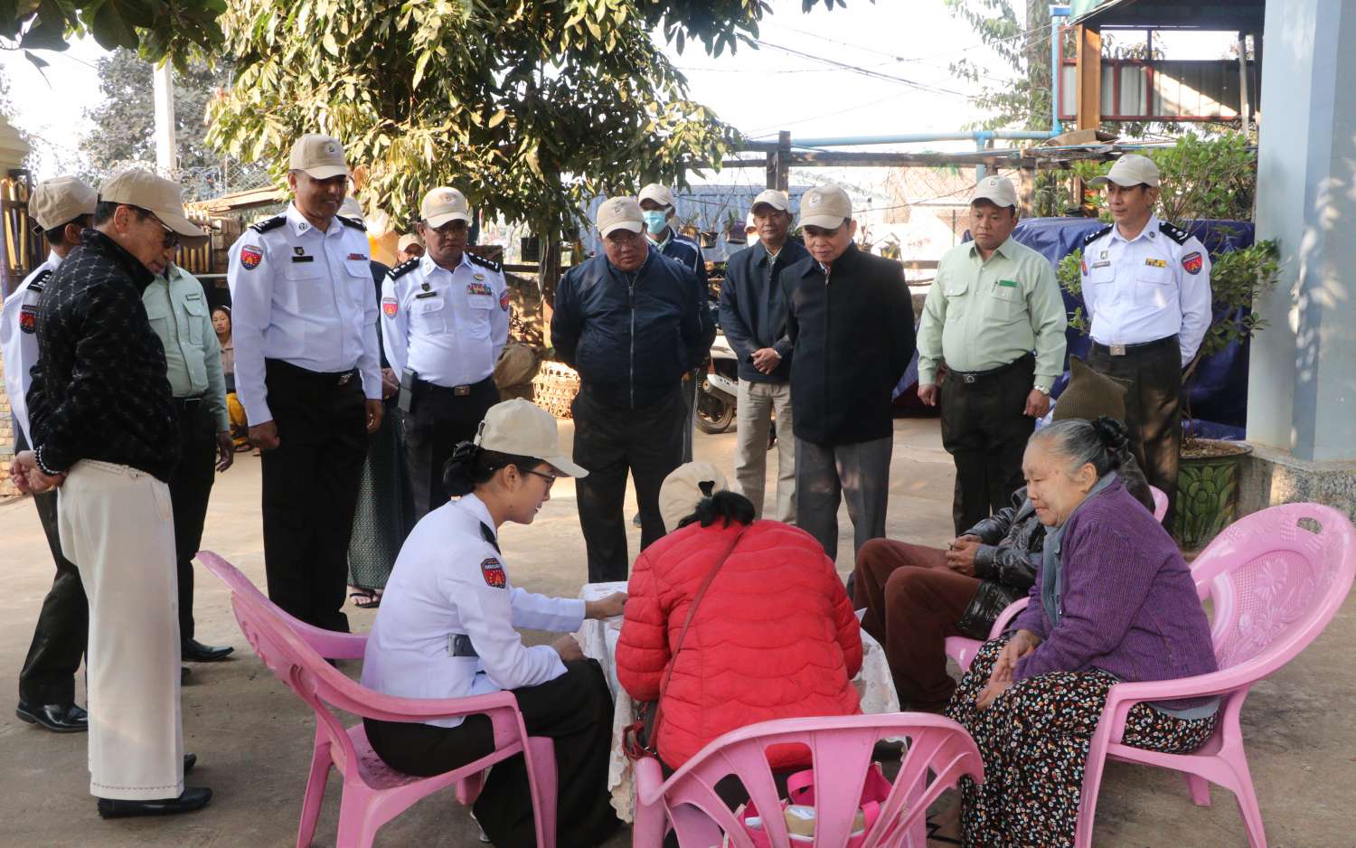 မြေပြင်ကွင်းဆင်းစာရင်းကောက်ယူရေးကြီးကြပ်မှု ဗဟိုကော်မတီဥက္ကဋ္ဌ၊ လူဝင်မှုကြီးကြပ်ရေးနှင့်ပြည်သူ့အင်အားဝန်ကြီးဌာန ပြည်ထောင်စုဝန်ကြီး ဦးမြင့်ကြိုင်၊ ရှမ်းပြည်နယ်၊ မြေပြင်ကွင်းဆင်းစာရင်းကောက်ယူရေးကြီးကြပ်မှုကော်မတီဥက္ကဋ္ဌ ပြည်နယ်ဝန်ကြီးချုပ် ဒေါက်တာကျော်ထွန်းနှင့် တာဝန်ရှိသူများသည် ယမန်နေ့နံနက်ပိုင်းက လားရှိုးမြို့အတွင်း လူဦးရေစာရင်းမှန်ကန်ရေးအတွက် မြေပြင်တစ်အိမ်တက်ဆင်း ကွင်းဆင်းစာရင်းကောက်ယူနေမှုကို သွားရောက်ကြည့်ရှုအားပေးပြီး လုပ်ငန်းလိုအပ်ချက်များကို ဖြည့်ဆည်းဆောင်ရွက်ပေးသည်။