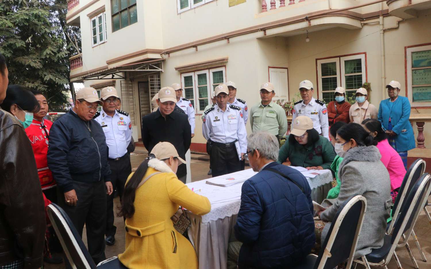 ယင်းနောက် ပြည်ထောင်စုဝန်ကြီးသည် လားရှိုး၊ ကျောက်မဲ၊ တန့်ယန်း၊ ကွတ်ခိုင်တို့မှ ခရိုင်နှင့်မြို့နယ် ဦးစီးဌာနမှူးများနှင့် ဝန်ထမ်းများကို လားရှိုးမြို့ လူဝင်မှုကြီးကြပ်ရေးနှင့် ပြည်သူ့အင်အားဝန်ကြီးဌာန ဒုတိယပြည်နယ်ဦးစီးမှူးရုံး၌တွေ့ဆုံပြီး နိုင်ငံတော်တွင် နောင်ကျင်းပမည့် အထွေထွေရွေးကောက်ပွဲ၌ မဲပေးပိုင်ခွင့်ရှိသူနိုင်ငံသားတိုင်း ကိုင်ဆောင်သင့်သည့် ကတ်ပြားတစ်မျိုးမျိုး ကိုင်ဆောင်မဲပေးနိုင်ရေးအတွက် နိုင်ငံသားကတ်ထုတ်ပေးခြင်းလုပ်ငန်းကို နိုင်ငံတစ်ဝန်း ပန်းခင်းစီမံချက်ဖြင့် ကွင်းဆင်းဆောင်ရွက်ပေးလျက်ရှိကြောင်း၊ ကွင်းဆင်းဆောင်ရွက်ပေးရန်ကျန်ရှိသည့် “ဝ”အထူးဒေသအတွင်း ယခုအခါ မိမိဌာနဝန်ထမ်းထုတ်နုတ်အင်အားဖြင့် နိုင်ငံသားကတ်ထုတ်ပေးခြင်းလုပ်ငန်းကို ကွင်းဆင်းဆောင်ရွက်ပေးလျက်ရှိကြောင်း၊ ယင်းဒေသအတွင်း လျာထားသတ်မှတ်ချက်အတိုင်း ပြည့်မှီပြီးစီးနိုင်ရေးအတွက် ဆက်လက်ကြိုးပမ်းဆောင်ရွက်သွားကြရမည်ဖြစ်ကြောင်း။