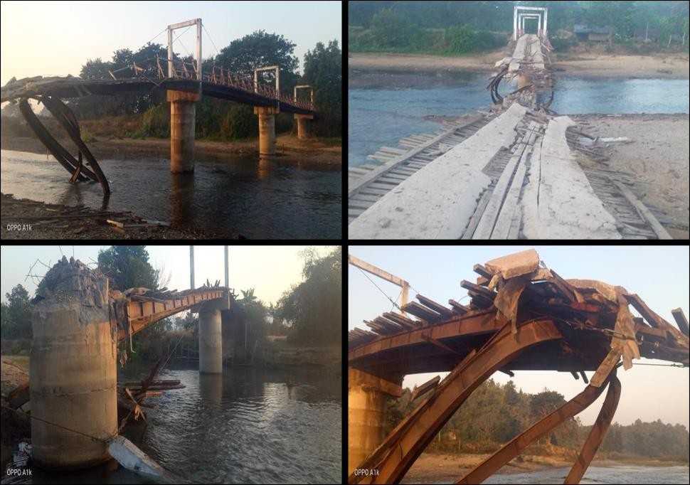 ကရင်ပြည်နယ်၊ သံတောင်ကြီးမြို့နယ်၌ အကြမ်းဖက်သမားများက သပြေညွန့် - မုတ္တိမြောင် - ဇင်းတိုင်ကျေးရွာများသို့ဆက်သွယ်ထားသည့် ယောက်တဝချောင်းကူးတံတားအား မိုင်းထောင် ဖောက်ခွဲဖျက်ဆီးခဲ့သည်။