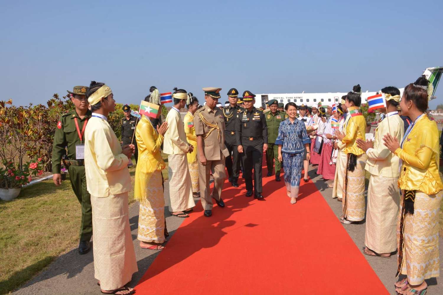 အဆိုပါ ထိုင်းဘုရင့်တပ်မတော်ကာကွယ်ရေးဦးစီးချုပ် ဦးဆောင်သည့် ထိုင်းဘုရင့်တပ်မတော် အဆင့်မြင့် ကိုယ်စားလှယ်အဖွဲ့အား ညှိနှိုင်းကွပ်ကဲရေးမှူး(ကြည်း၊ ရေ၊ လေ) ဗိုလ်ချုပ်ကြီး မောင်မောင်အေးနှင့်ဇနီး၊ ကာကွယ်ရေးဦးစီးချုပ်ရုံးမှ တပ်မတော်အရာရှိကြီး များနှင့်ဇနီးများ၊ အနောက်ပိုင်းတိုင်းစစ်ဌာနချုပ်တိုင်းမှူး၊ မြန်မာနိုင်ငံဆိုင်ရာ ထိုင်းဘုရင့် တပ်မတော်စစ်သံမှူးနှင့် တာဝန်ရှိသူများက လေဆိပ်တွင် ရင်းနှီးနွေးထွေးစွာကြိုဆို နှုတ်ဆက်ခဲ့ကြသည်။