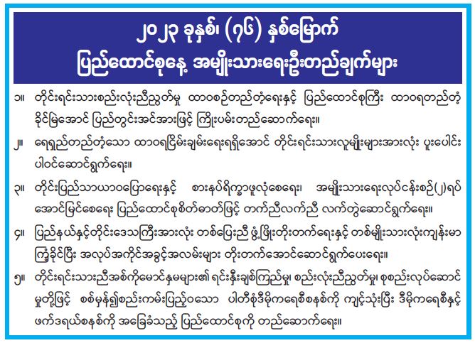 ၂၀၂၃ ခုနှစ်၊ (၇၆) နှစ်မြောက် ပြည်ထောင်စုနေ့ အမျိုးသားရေးဦးတည်ချက်များ
