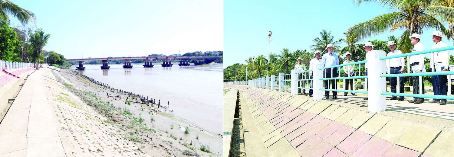ထို့နောက် ပြည်ထောင်စုဝန်ကြီးနှင့် အဖွဲ့သည် သင်္ဃန်းကျွန်းမြို့နယ် သုဝဏ္ဏ (၂၉) ရပ်ကွက်ရှိ ရေအရင်းအမြစ်နှင့် မြစ်ချောင်းများဖွံ့ဖြိုးတိုးတက်ရေးဦးစီးဌာနက အကောင်အထည်ဖော် ဆောင်ရွက်ထားရှိသော ပေ ၁၉၁၀ အရှည်ရှိသည့် ကမ်းထိန်းလုပ်ငန်းနေရာရှိ ရှင်းလင်းဆောင်သို့ ရောက်ရှိရာ တာဝန်ရှိသူများက စီမံကိန်းဆိုင်ရာ အချက်အလက်များကို ရှင်းလင်းတင်ပြမှုအပေါ် ပြည်ထောင်စုဝန်ကြီးက မြစ်ကမ်းပါးတစ်လျှောက် အမြဲစိမ်းလန်းစိုပြည်၍ သာယာလှပရေး၊ သန့်ရှင်းသပ်ရပ်ရေးကိစ္စများကို သက်ဆိုင်ရာ မြို့နယ်အဖွဲ့အစည်းများနှင့် ညှိနှိုင်းဆောင်ရွက်သွားရန် မှာကြားသည်။