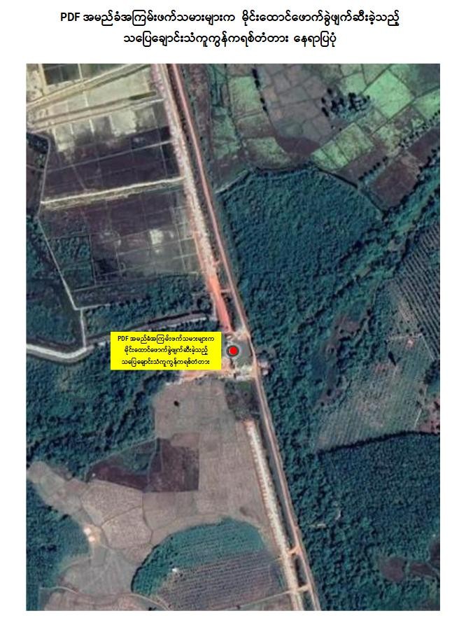 မွန်ပြည်နယ်၊ သံဖြူဇရပ်မြို့နယ်၊ နှစ်ကရင်ကျေးရွာ - သာဂရကျေးရွာသွား ကားလမ်းပေါ်ရှိ သပြေချောင်းသံကူကွန်ကရစ်တံတားအား PDF အမည်ခံအကြမ်းဖက်သမားများက မိုင်းထောင်ဖောက်ခွဲဖျက်ဆီးခဲ့ကြောင်း သိရှိရသည်။