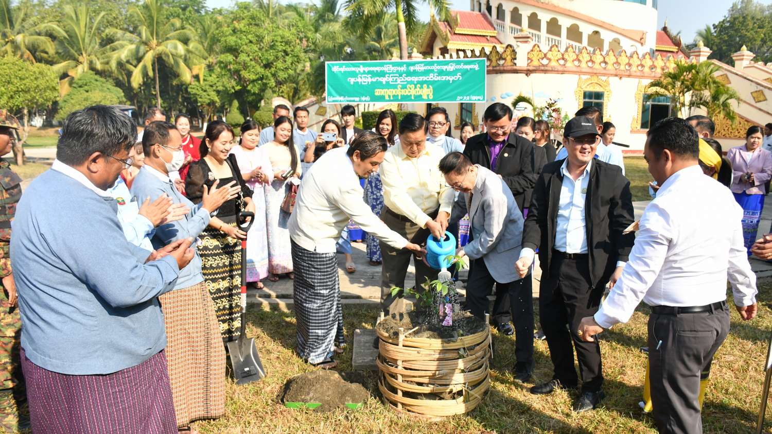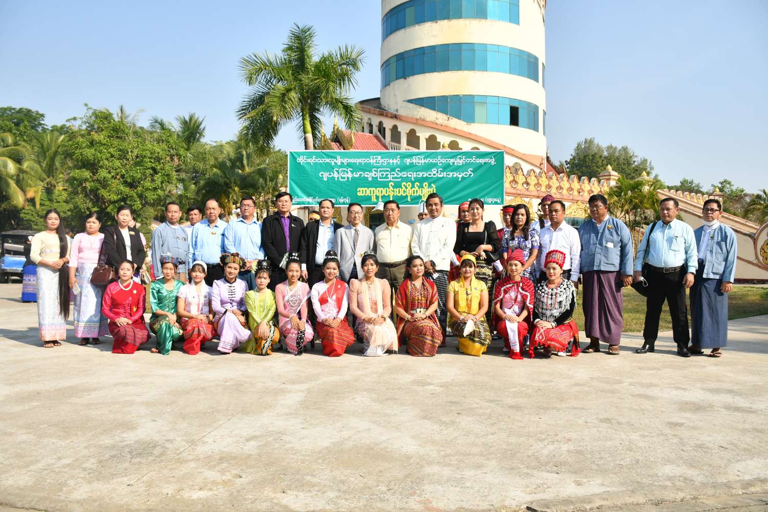 ယင်းနောက် ပြည်ထောင်စုဝန်ကြီး၊ တိုင်းဒေသကြီးနှင့် ပြည်နယ်အစိုးရအဖွဲ့ တိုင်းရင်း သားရေးရာဝန်ကြီးများ၊ ဌာနဆိုင်ရာအကြီးအကဲများ၊ ဂျပန်-မြန်မာ ယဉ်ကျေးမှုမြှင့်တင်ရေးအဖွဲ့ ကိုယ်စားလှယ်များသည် ပြည်ထောင်စုတိုင်းရင်းသားကျေးရွာ (ရန်ကုန်)အတွင်းရှိ နန်းမြင့်မျှော်စင်အနီးတွင် ဆာကူရာ ပန်းပင်များစိုက်ပျိုးပေးကြပြီး စုပေါင်းမှတ်တမ်းတင် ဓာတ်ပုံ ရိုက်ကြသည်။