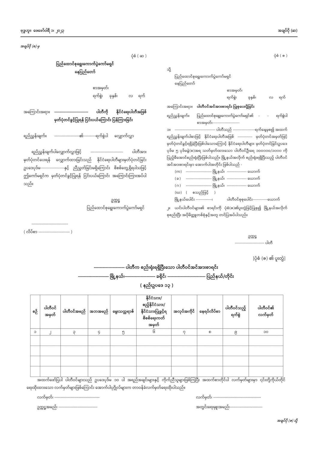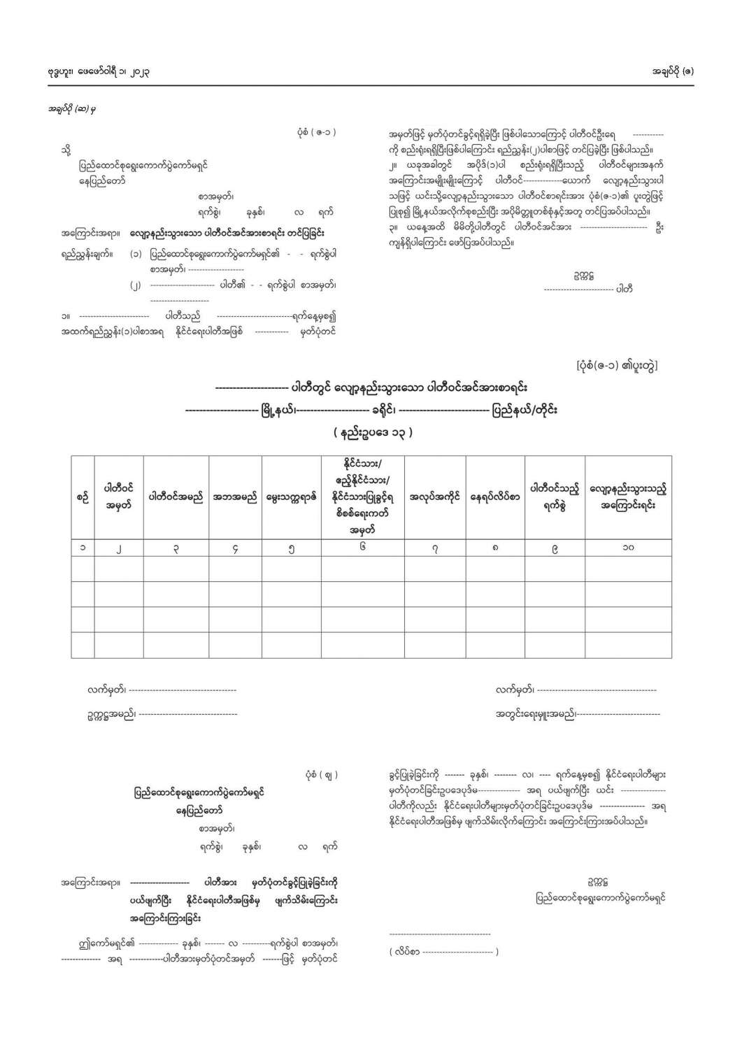 ဝန်ကြီးဌာန ကြေညာချက်များ
