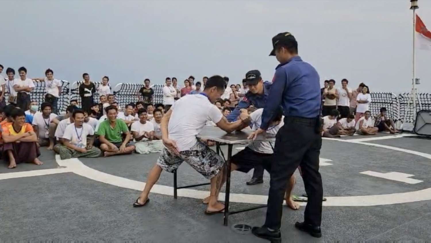 ထိုသို့ပို့ဆောင်ပေးရန် စစ်ရေယာဉ်(ကျန်စစ်သား)ဖြင့် တင်ဆောင်လာစဉ် စစ်ရေယာဉ်ရှိ အရာရှိ၊ စစ်သည်များက နွေးထွေးစွာကြိုဆိုနှုတ်ဆက်ပြီး ရေယာဉ်အပေါ်၌ စနစ်တကျနေရာချထားပေးခြင်း၊ အာဟာရပြည့်စားသောက်ဖွယ်ရာများကျွေးမွေး၍ ကိုယ်လက်လေ့ကျင့်ခန်းများဆောင်ရွက်စေခြင်း၊ အားကစားပြိုင်ပွဲများကျင်းပပေးခြင်း၊ ကျန်းမာရေးစောင့်ရှောက်မှုများ အနီးကပ်ဆောင်ရွက်ပေးခြင်းနှင့် ဖျော်ဖြေရေးအစီအစဉ်များဖြင့် စိတ်ရွှင်လန်းအပန်းပြေစေရန် ဆောင်ရွက်ပေးကြသည်။