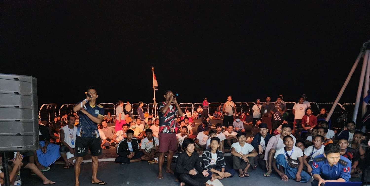 အဆိုပါ စစ်ရေယာဉ်သည် ယနေ့နံနက်ပိုင်းတွင် ကျိုက္ခမီအဝအနီးသို့ရောက်ရှိပြီး မွန်ပြည်နယ်မှ နေရပ်ပြန်မြန်မာနိုင်ငံသား(၅၂)ဦးတို့အား တပ်မတော်(ရေ)မှ ကမ်းထိုးရေယာဉ်ပေါ်သို့ ပြောင်းလဲတင်ဆောင်၍ မော်လမြိုင်မြို့သို့ စီစဉ်ပို့ဆောင်ပေးသည်။