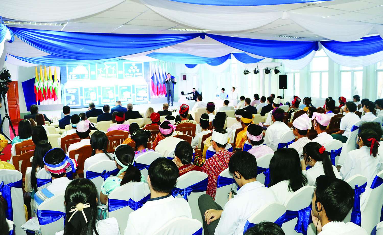 အခမ်းအနားသို့ သိပ္ပံနှင့်နည်းပညာဝန်ကြီးဌာန ပြည်ထောင်စုဝန်ကြီး ဒေါက်တာမျိုးသိန်းကျော်နှင့် တာဝန်ရှိသူများ၊ ရုရှားနိုင်ငံပိုင်အဏုမြူစွမ်းအင်ကော်ပိုရေးရှင်း (ROSATOM) မှ ညွှန်ကြားရေးမှူးချုပ် Mr. Alexey Evgenievich Likhachev နှင့် တာဝန်ရှိသူများ၊ နည်းပညာတက္ကသိုလ်များ၊ ကွန်ပျူတာ တက္ကသိုလ်များနှင့် ဆေးတက္ကသိုလ်များမှ ကျောင်းသား ကျောင်းသူများ တက်ရောက်ကြသည်။
