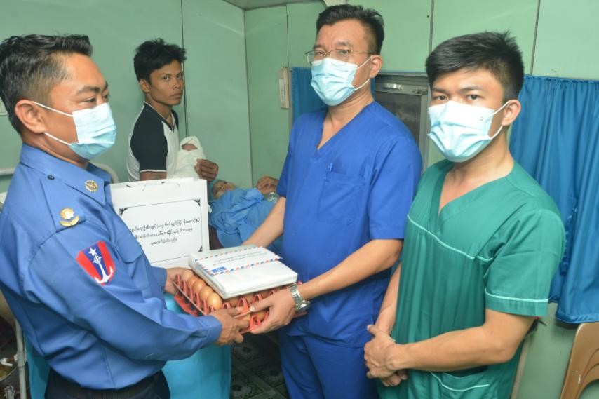 ထို့ပြင် တပ်မတော်မြစ်တွင်း သွားဆေးရုံရေယာဉ် (ရွှေပုဇွန်)ပေါ်၌ တပ်မတော်နယ်လှည့် အထူးကုဆေးအဖွဲ့မှ သားဖွားမီးယပ် ပါရဂူဗိုလ်ကြီး ရန်ပိုင်ဦး ဦးဆောင်ပြီး မအူပင်မြို့နယ်၊ မလက်တိုကျေးရွာအုပ်စု၊ တမလိုကျေးရွာနေ ဦးစိုးလင်း၏ ဇနီးဖြစ်သူ ဒေါ်ကေခိုင်ဝင်းကို ယနေ့ညနေ ၄ နာရီ ၄၀ မိနစ်တွင် ၅ ပေါင်၊ ၅ အောင်စရှိ ယောကျ်ားလေး တစ်ဦးအား အောင်မြင်စွာ ခွဲစိတ်မွေးဖွားပေးနိုင်ခဲ့ပြီး ကလေးငယ်ကို မောင်နေဇွန်မင်းဟု အမည်ပေးခဲ့ကာ ကာကွယ်ရေးဦးစီးချူပ်(ရေ)ဗိုလ်ချူပ်ကြီး မိုးအောင်က ပေးအပ်သည့် ထောက်ပံ့ငွေနှင့် လက်ဆောင်ပစ္စည်းများကို တာဝန်ရှိသူတစ်ဦးက ကိုယ်စားပေးအပ်သည်။
