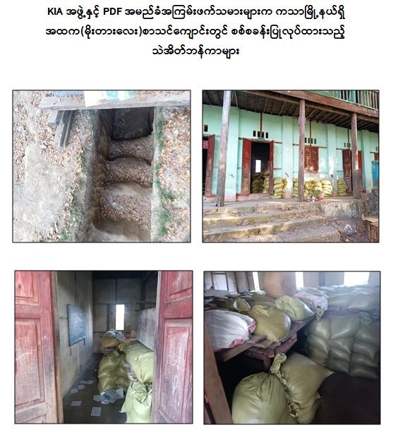 “ကျောင်းသားတွေ ကျောင်းတက်တဲ့ စာသင်ကျောင်းကို စစ်စခန်းအနေနဲ့ KIA နဲ့ PDF အဖွဲ့က ဘန်ကာတွေ လာလုပ်သွားတာပါ။ စစ်စခန်းလုပ်ပြီး ဒီမှာလဲ သူတို့ရံဖန်ရံခါနေပါတယ်။ သူတို့အင်အားကတော့ တစ်ခေါက်လာရင် အနည်းဆုံးအင်အား ၅၀ နဲ့ ၁၀၀ ကြားလာပါတယ်။ သဲအိတ်တွေကိုတော့ ပြီးခဲ့တဲ့ ၁၂ လပိုင်းလောက်က ကျွန်တော်တို့ရွာကိုလာပြီး သူတို့ စစ်စခန်းချတဲ့အချိန်မှာ အကာအကွယ်အနေနဲ့ သူတို့လုပ်သွားတာပါ။ ကျွန်တော်တို့ ရွာကိုလာရင် သူတို့တွေ ဒီစာသင်ကျောင်းမှာပဲ စတည်းချပြီးနေတာများတယ်ဗျ။ ကလေးတွေ ကျောင်းတက်တဲ့ စာသင်ကျောင်းကို အကာအကွယ်လုပ်၊ ခုတုံးလုပ်ပြီးနေတယ်လို့ပဲ ကျွန်တော်တို့ကတော့ အဲဒီလိုပဲထင်တယ်ဗျ။ စာသင်ကျောင်းတစ်ဝန်းလုံးအနက် အကာအကွယ် တွေ ဘန်ကာတွေဆောက်ထားတာ ရွာသားတွေကိုခေါ်ပြီး အတင်းအဓမ္မခိုင်းပြီးမှ လုပ်ခိုင်းတာ ဗျ။ များသောအားဖြင့် ဒီကောင်တွေ ဒဏ်ကိုခံရတာကတော့ ထမင်းတွေ ချက်ကျွေးရတယ်။ တစ်အိမ်လျှင် ထမင်းသုံးနပ် ရံဖန်ရံခါဆိုရင် ဆက်ကြေးအနေနဲ့ ပိုက်ဆံ ကောက်ခံတာတွေ လည်းရှိတယ်။ ကျွန်တော်တို့ ကျေးရွာသားတွေအနေနဲ့ကတော့ KIA/PDF တွေလာတာကို လုံးဝမနှစ်သက်ပါဘူး။ ကျေးရွာကလည်း ဒီကောင်တွေ ဒဏ်ခံရတာ အမြဲတမ်း လစဉ်လိုလို ဖြစ်နေတော့ ဒီအဖွဲ့အစည်းကို လုံးဝလက်မခံပါဘူး။”
