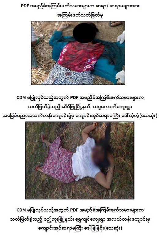 ၁။ တည်ဆဲဥပဒေများအရ အကြမ်းဖက်အဖွဲ့အစည်းများအဖြစ် သတ်မှတ်ထားသည့် NUG၊ CRPH နှင့် ၎င်းတို့၏လက်ဝေခံ PDF အမည်ခံအကြမ်းဖက်အဖွဲ့များသည် ၎င်းတို့အာဏာရရှိရေးအတွက် အလုံးစုံပျက်သုဉ်းရေးလမ်းစဉ်ကိုကိုင်စွဲပြီး နိုင်ငံတော်၏ အနာဂတ်ဖြစ်သော လူငယ်များ၏ ပညာရေးကဏ္ဍကို ဆင်ခြင်တုံတရားကင်းမဲ့စွာ နည်းမျိုးစုံဖြင့် နှောင့်ယှက်တိုက်ခိုက်ဖျက်ဆီးလျက်ရှိသည်။ ၂၀၂၁ ခုနှစ် ဖေဖော်ဝါရီ ၁ ရက်မှ ၂၀၂၃ ခုနှစ် ဇန်နဝါရီလကုန်အထိ NUG အဖွဲ့၏ စေခိုင်းချက်အရ PDF အမည်ခံ အကြမ်းဖက်သမားများသည် နိုင်ငံတဝှမ်းလုံးရှိ စာသင်ကျောင်း၊ တက္ကသိုလ်/ကောလိပ် များအား ဗုံးခွဲတိုက်ခိုက်မှု ၅၂၈ ကြိမ်၊ မီးရှို့ဖျက်ဆီးမှု ၁၂၃ ကြိမ်၊ စာသင်ကျောင်းများ မဖွင့်ရန် ခြိမ်းခြောက်မှု ၁၁၅ ကြိမ်ပြုလုပ်ခဲ့ကြပြီး CDM မလုပ်ဘဲ စာသင်ကျောင်းများ ဖွင့်လှစ်သင်ကြားပေးနေသည့် တာဝန်သိ နိုင်ငံ့ဝန်ထမ်းကောင်း ဆရာ/ဆရာမ များနှင့် ပညာရေးဝန်ထမ်းများအား ရက်စက်စွာ လုပ်ကြံသတ်ဖြတ်ခဲ့သဖြင့် သေဆုံးသူ ၆၆ ဦး နှင့် ဒဏ်ရာရသူ ၂၅ ဦး ရှိနေပြီဖြစ်သည်။ ထိုသို့ စာသင်ကျောင်းများအား တိုက်ခိုက်ဖျက်ဆီးခြင်း၊ ဆရာ/ဆရာမများအား လုပ်ကြံသတ်ဖြတ်ခြင်း များကို ပြုလုပ်ခဲ့သည့်အပြင် ကုလသမဂ္ဂနှင့် နိုင်ငံတကာအဖွဲ့အစည်းများမှ ဥပဒေအရ တားမြစ်ထားသည့် စာသင်ကျောင်းများအား စစ်ရေးအရ အသုံးပြုခြင်းကိုလည်း ပြုလုပ်လျက်ရှိ ကြောင်း မြေပြင်စစ်ဆေးတွေ့ရှိချက်များအရ သိရှိရသည်။