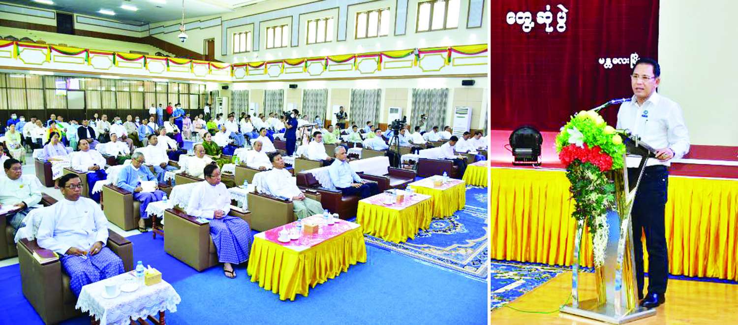 ယင်းနောက် မန္တလေးတိုင်းဒေသကြီးဝန်ကြီးချုပ် ဦးမျိုးအောင်က နိုင်ငံတော်အစိုးရအနေဖြင့် “ရှေ့သို့လှမ်းချီပန်းတိုင်ဆီ” ဆောင်ပုဒ်နှင့်အညီ ရှေ့လုပ်ငန်းစဉ်နှင့် ဦးတည်ချက်များချမှတ်ပြီး လုပ်ငန်းများအောင်မြင်စေရန် စနစ်တကျစီမံဆောင်ရွက်လျက်ရှိပါကြောင်း၊ မန္တလေးတိုင်းဒေသကြီးအနေဖြင့်လည်း တက်ရောက်လာကြသည့် စီးပွားရေးလုပ်ငန်းရှင်များ၊ စာပေ၊ ရုပ်ရှင်၊ သဘင်၊ ဂီတ အနုပညာရှင်များအားလုံးကိုယ်စား ယခုထက်ပိုမိုဖွံ့ဖြိုး တိုးတက်အောင် ကြိုးစားဆောင်ရွက်သွားမည်ဖြစ်ပါကြောင်း ပြောကြားသည်။