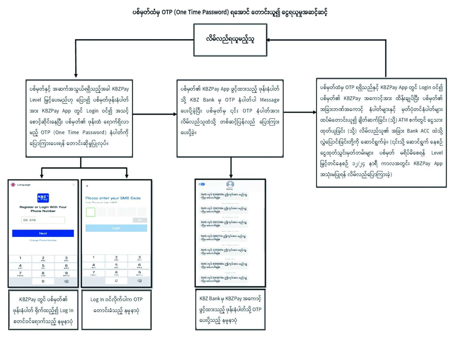 သို့ဖြစ်ပါ၍ အများပြည်သူများအနေဖြင့် မိမိတို့၏ Bank Account များအတွင်းမှ ငွေကြေးများအား မသမာသူဒုစရိုက်သမားများ၏ နည်းပညာပိုင်းဖြင့် ဆက်သွယ်ရေးကွန်ရက်ကို အသုံးပြု၍ လိမ်လည် လွှဲပြောင်းထုတ်ယူမှုမခံရစေရေး မိမိတို့၏ Email၊ ဖုန်းနံပါတ်နှင့် ကိုယ်ရေးအချက်အလက်များအား လုံခြုံမှုရှိစေရေး အထူးဂရုပြုဆောင်ရွက်ကြရန်နှင့် မသမာသူများ၏ အသုံးချခံမဖြစ်စေရေး ကိုယ်ရေးကိုယ်တာ လိုအပ်ချက်မှတစ်ပါး Bank Account နှင့် KBZ Pay Account များ ဖွင့်လှစ်ရောင်းချခြင်းမပြုလုပ်ကြရန် အသိပေးထုတ်ပြန်ထားကြောင်း သိရသည်။
